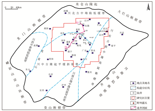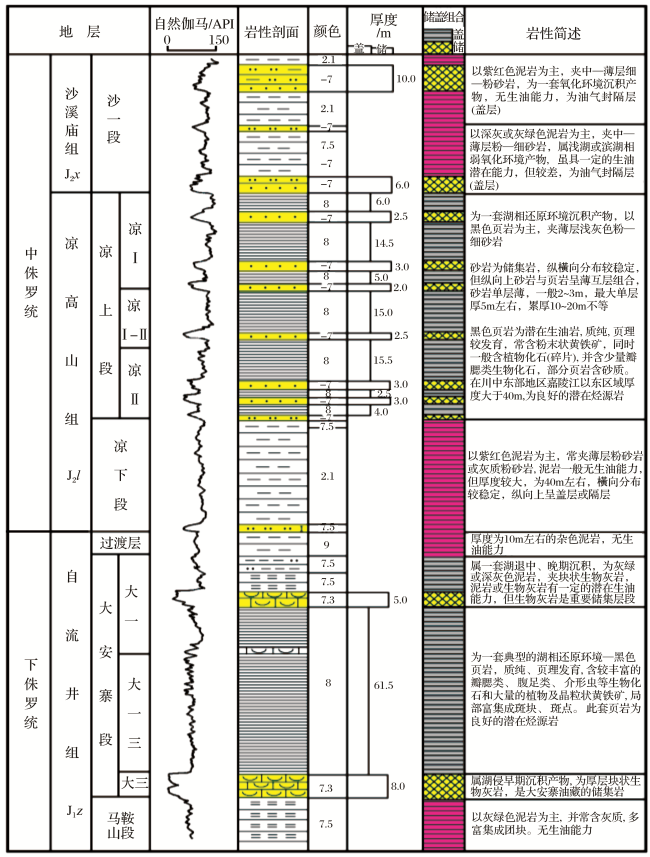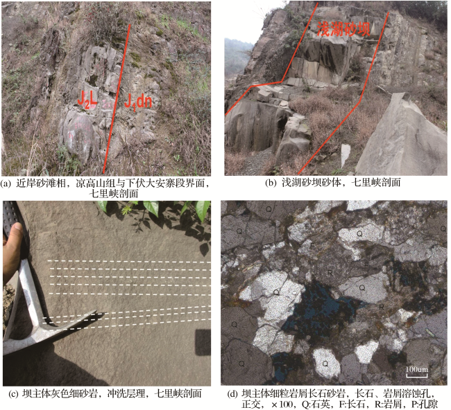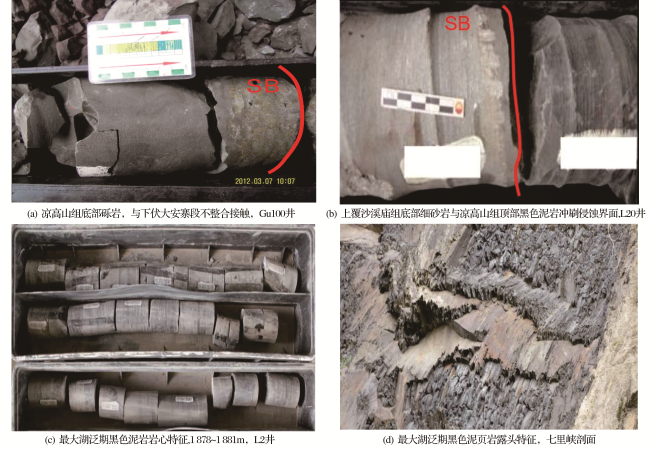 图4 凉高山组三级层序界面及最大湖泛期沉积特征Fig.4 Depositional characteristics of the sequence boundaries and maximum flooding period in Lianggaoshan Formation |