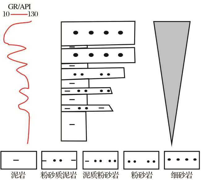 | 三角洲 | 三角洲前缘 | 水下分流河道 | 凉上Ⅰ亚段、凉上Ⅱ亚段 | RST、TST上部 | 3进积式、2退积式 | 6、5、3 |