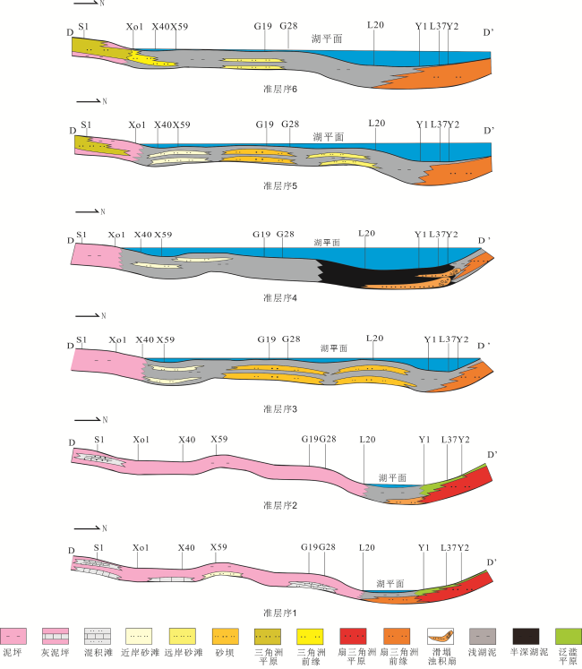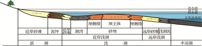 | 湖泊 | 滨湖 | 泥坪 | 凉下段 | TST下部 | 1退积式 | 1、2 |