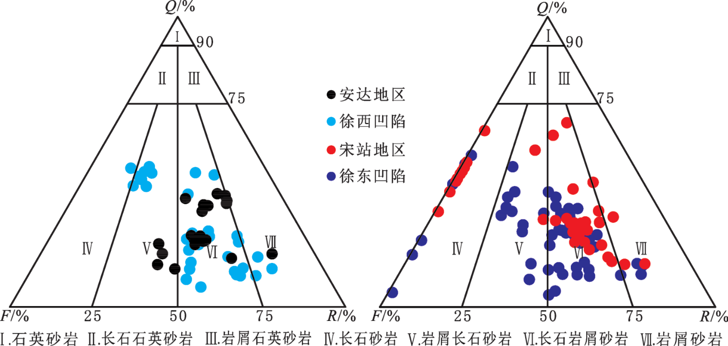 图2 徐家围子断陷不同构造单元砂岩岩石类型Fig.2 The type of sandstone in difference tectonic unit of Xujiaweizi fault depression |
