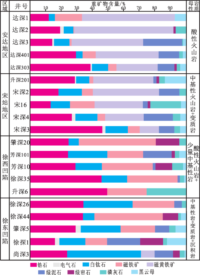 表1 徐家围子断陷不同构造单元砂岩碎屑矿物组成和砾岩砾石成分组合Table 1 Compose of detrital mineral and conglomerate in different tectonic unit of Xujiaweizi fault depression |