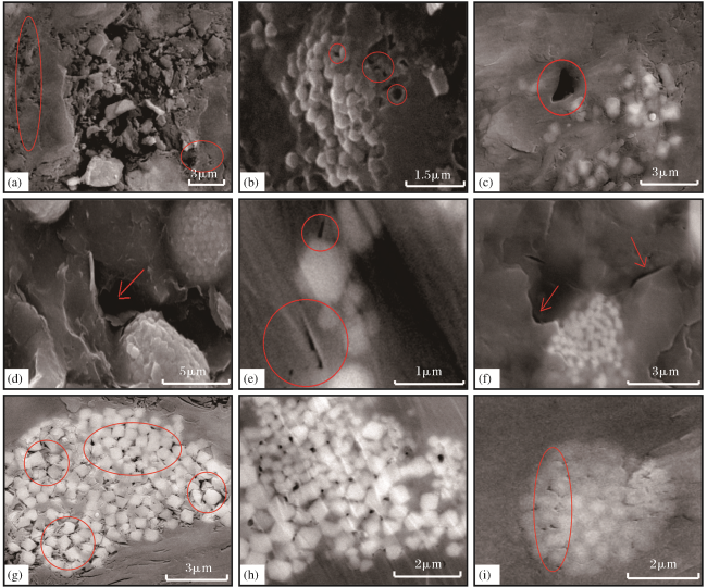 [40]表明黄铁矿被氧化溶解产生酸性排放物后,会形成纳微米级粒间孔和晶体溶蚀孔,改善储层渗透性。以上研究均表明深水陆棚相页岩中黄铁矿对页岩气富集成藏积极影响,对页岩气开采开发的重要作用。