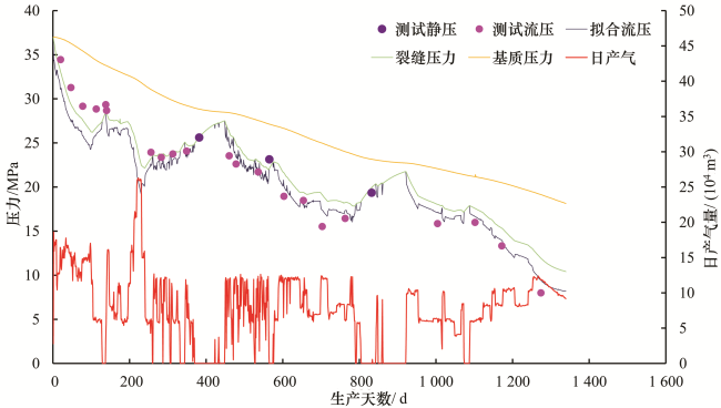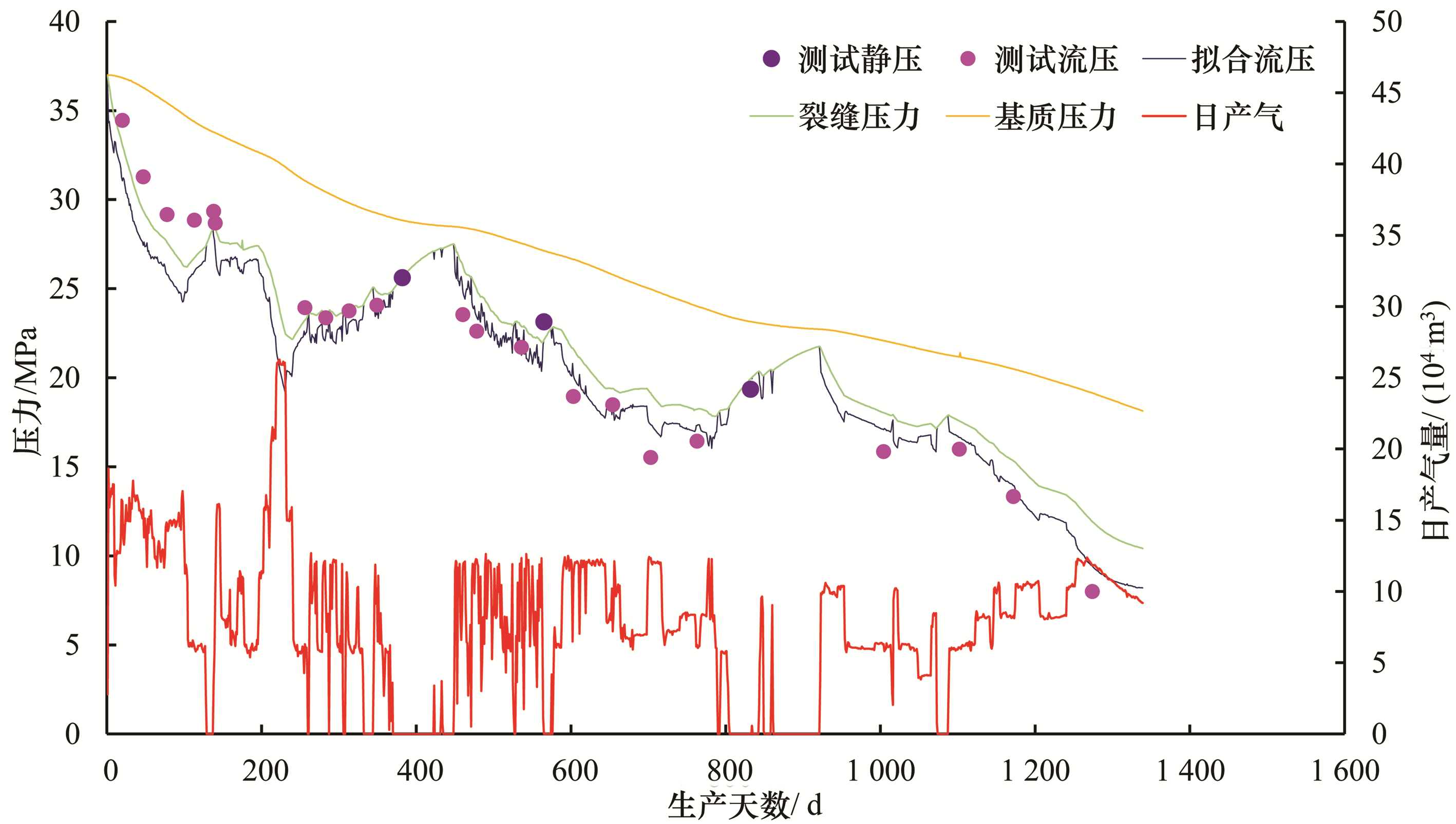 [11-14],这一类方法(特别是采用前3个月平均产气量作为初期产气量的Duong递减模型)对美国的页岩气田具有较好的适应性,但无法应用于中国最大的页岩气田——涪陵页岩气田,原因是美国页岩气井绝大部分是采用定井口压力的生产制度,而涪陵页岩气井采用定产量或变产量的生产制度,即使采用Blasingame提出的PNR进行递减计算,其拟合效果和评价结果均难以取得理想效果。③基于气井生产数据分析(PDA):采用物质平衡理论或URM、Hz Multifrac等综合评价方法