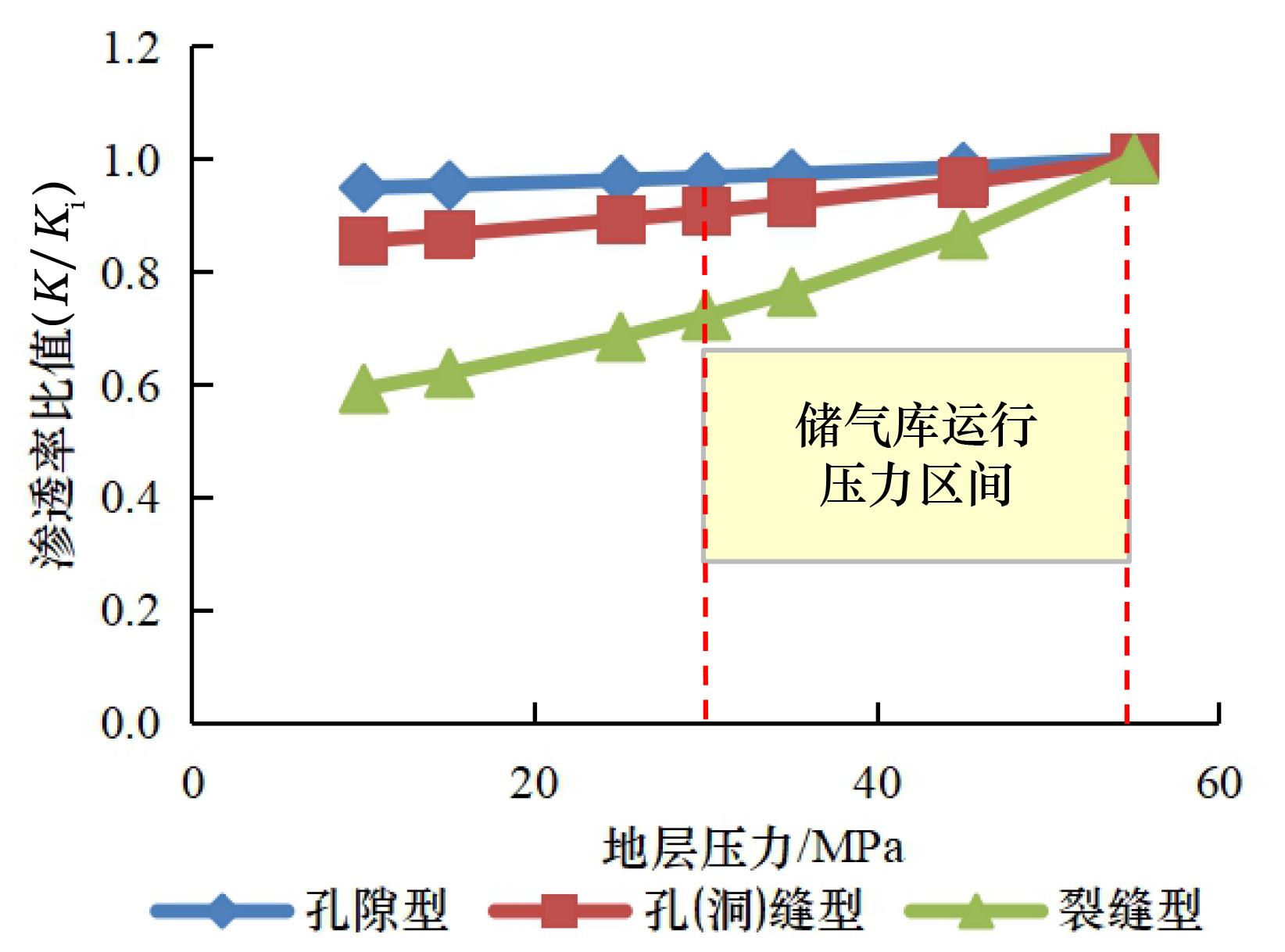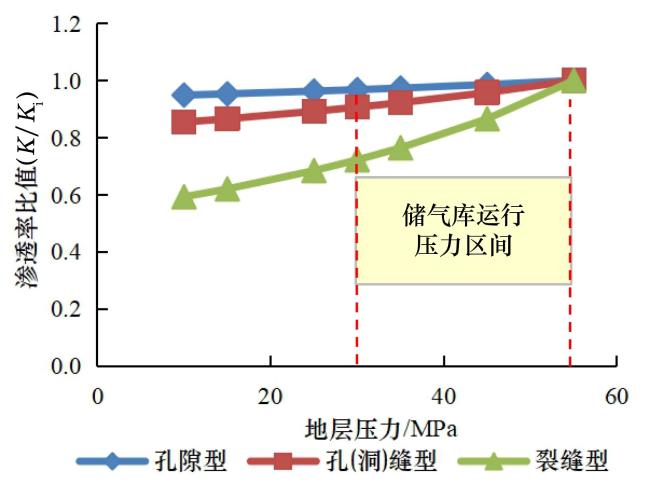 岩样类型 | 样号 | 加压至10 MPa时的渗透率 /(10-3 μm2) | 降压至10 MPa时的渗透率 /(10-3 μm2) | 卸压后渗透率恢复率/% | 恢复率平均值 /% |