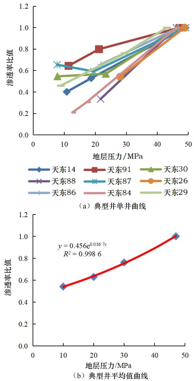 井号 | [渗透率/(10-3 μm2)]/(地层压力/MPa) | 渗透率比值 | |||