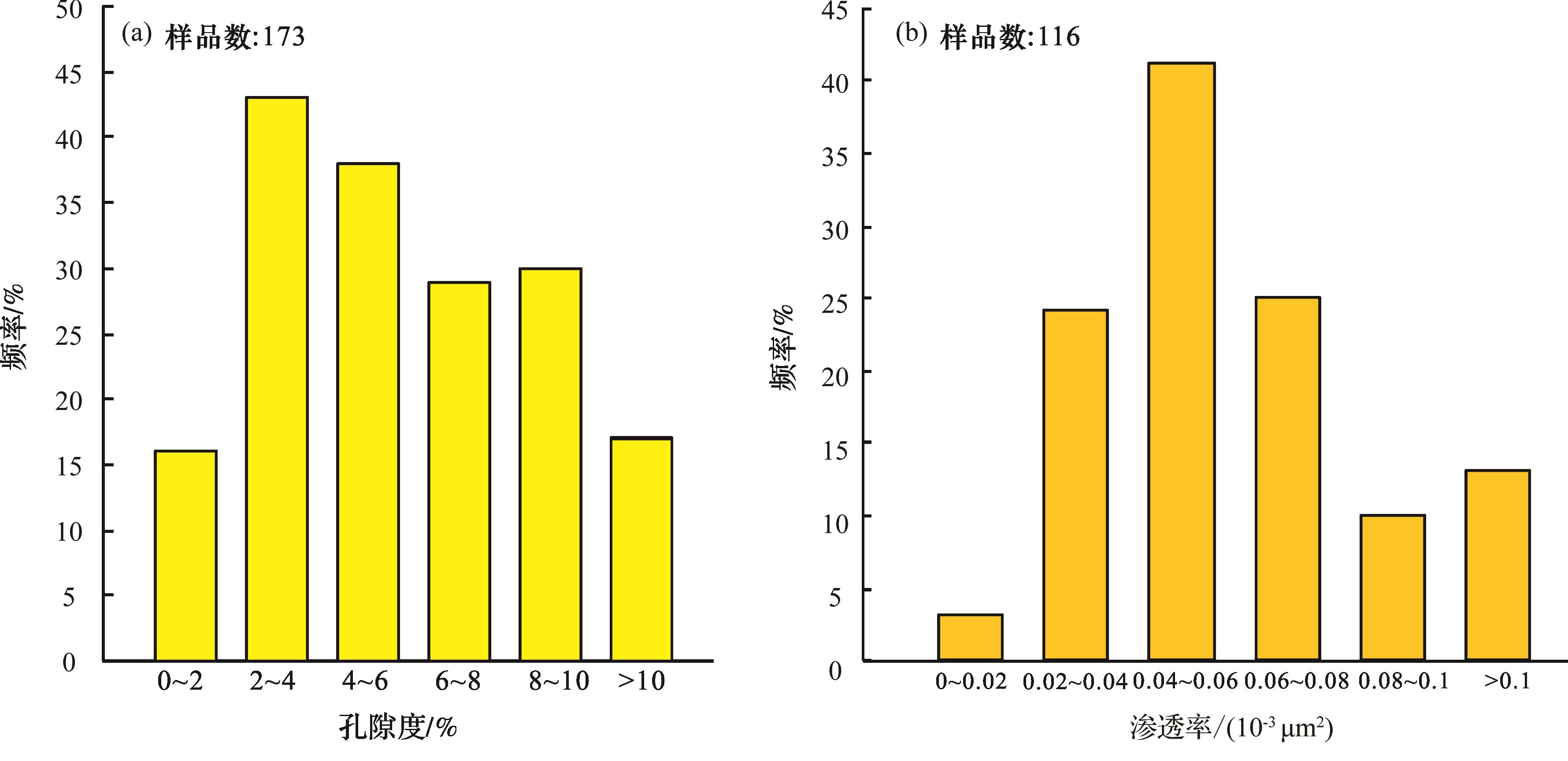 图6 鄂尔多斯盆地长73亚段砂质岩孔隙度和渗透率分布特征Fig.6 Distribution characteristics of porosity and permeability of sandy rocks of the Chang 73 sub-member, Ordos Basin |