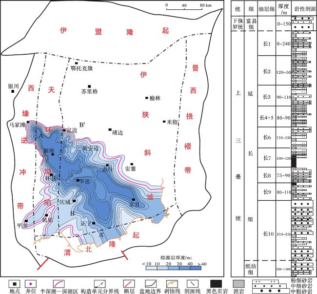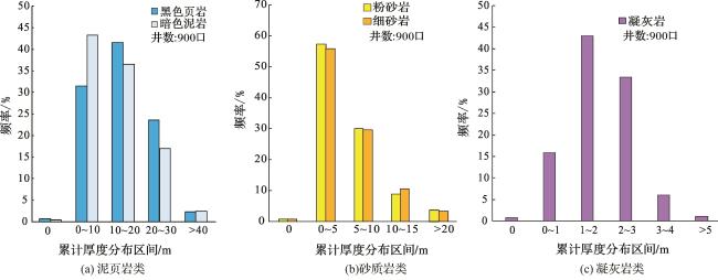 图3 长73亚段不同岩性累积厚度分布柱状图Fig.3 Histogram of cumulative thickness distribution of different lithologies in the Chang 73 sub-member |