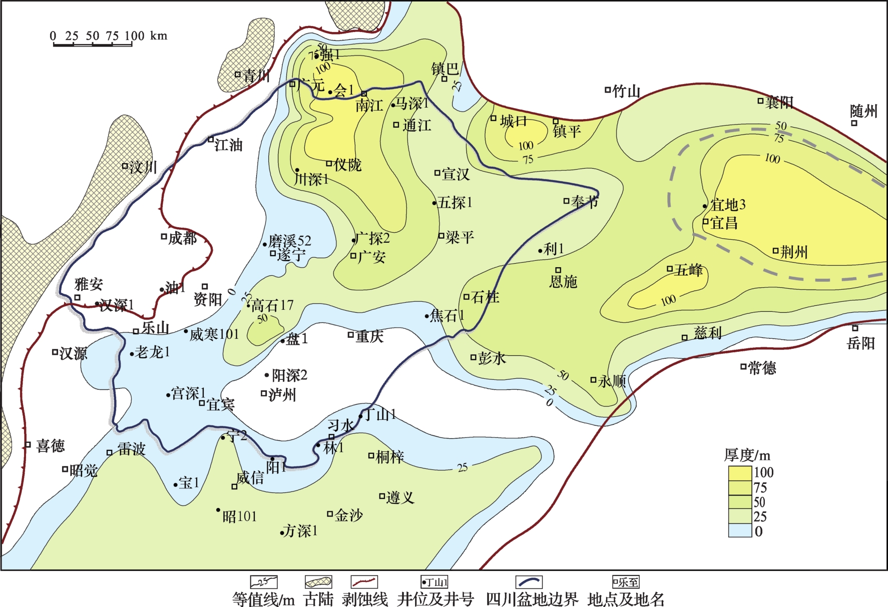 | 地层厚度 | 100~175 m | >125 m | <125 m | |||
