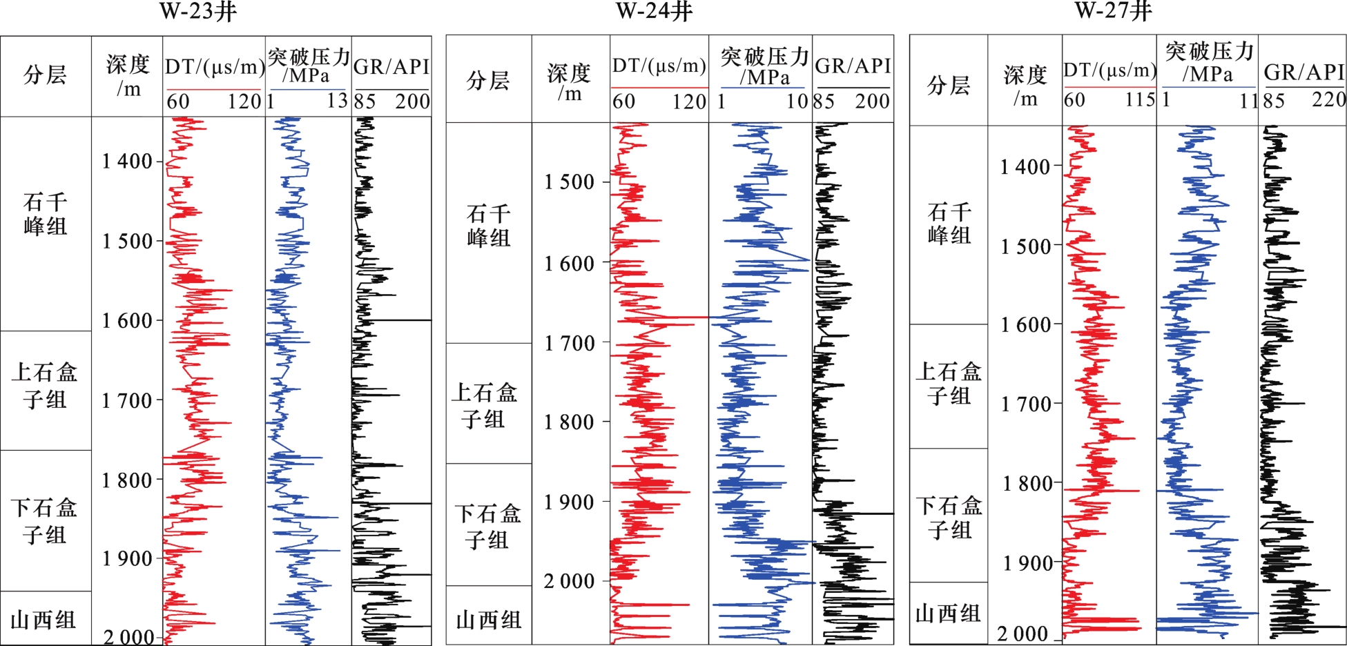 [27-28],导致石千峰组突破压力相对较高,在3.21~8.41 MPa之间(