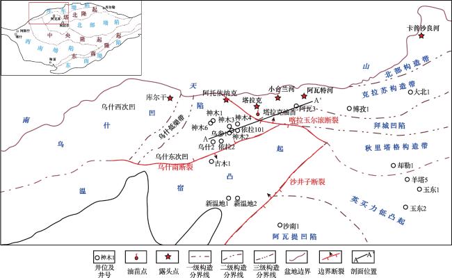 表1 乌什凹陷及周缘露头和钻井烃源岩评价参数Table 1 Evaluation parameter of outcrop and drilling source rocks around Wushi Sag |