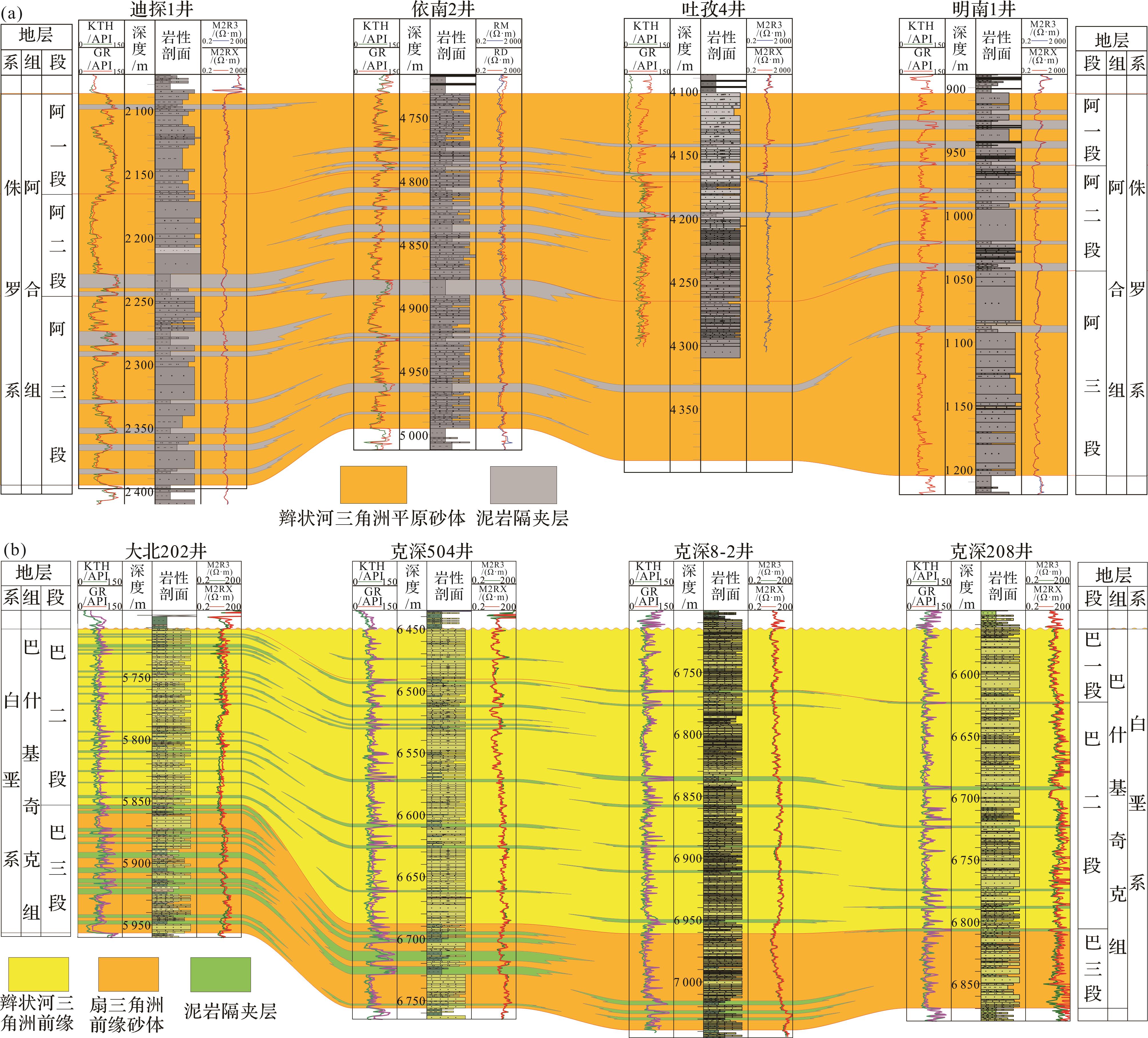 岩性 | 中—粗砂岩为主 | 中—细砂岩为主 | |