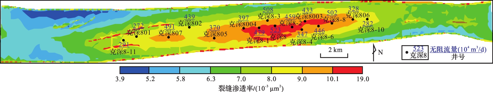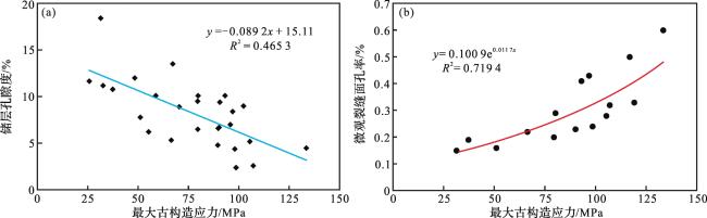 微观裂缝特征 | 包括粒内缝、粒缘缝、穿粒缝,裂缝面孔率平均0.79% | 以穿粒缝为主,裂缝面孔率平均约0.17% | |