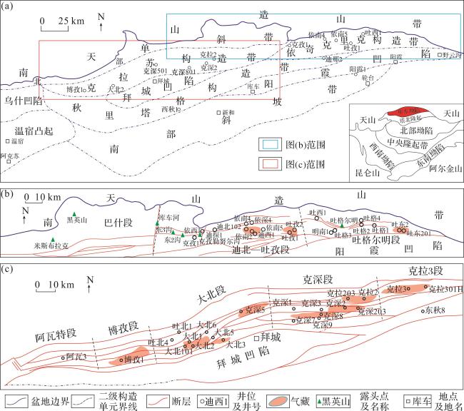 表1 库车坳陷北部构造带侏罗系阿合组与克拉苏构造带白垩系巴什基奇克组储层特征对比Table 1 Reservoir characteristics comparison of J1 a in the northern tectonic belt and K1 bs in the Kelasu tectonic belt of Kuqa Depression |