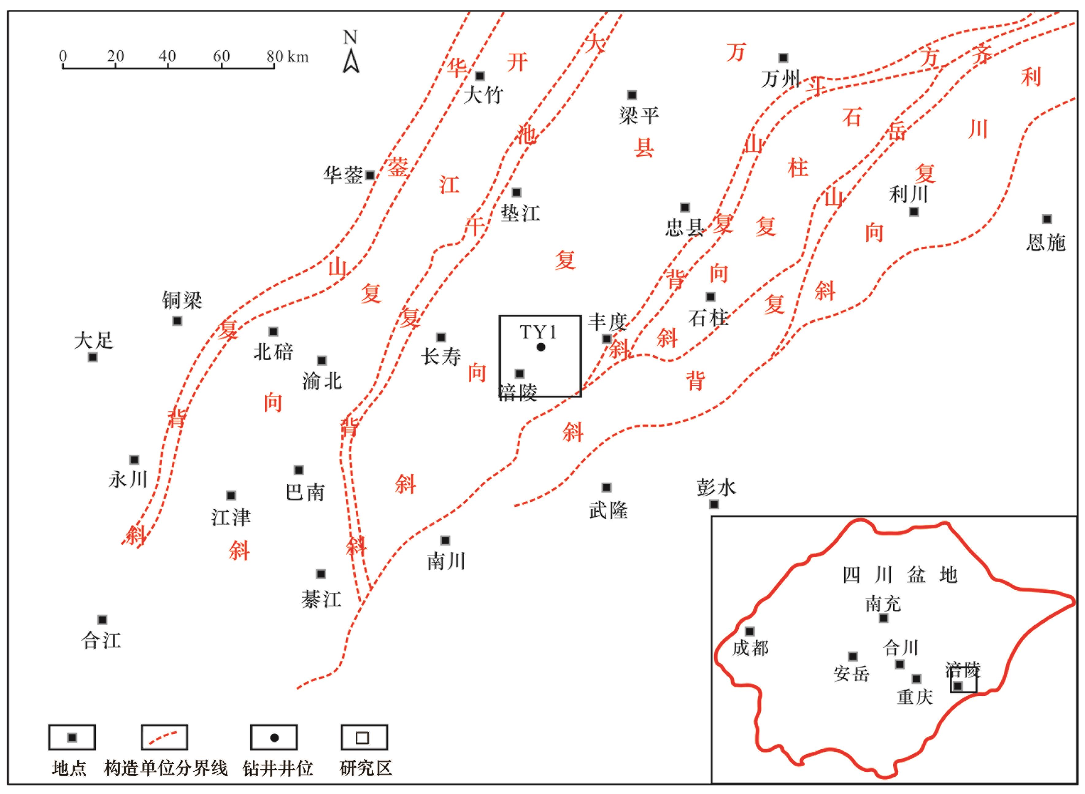 表1 TY1井凉高山组沉积相划分依据Table 1 Sedimentary facies division basis of Lianggaoshan Formation in Well TY1 |