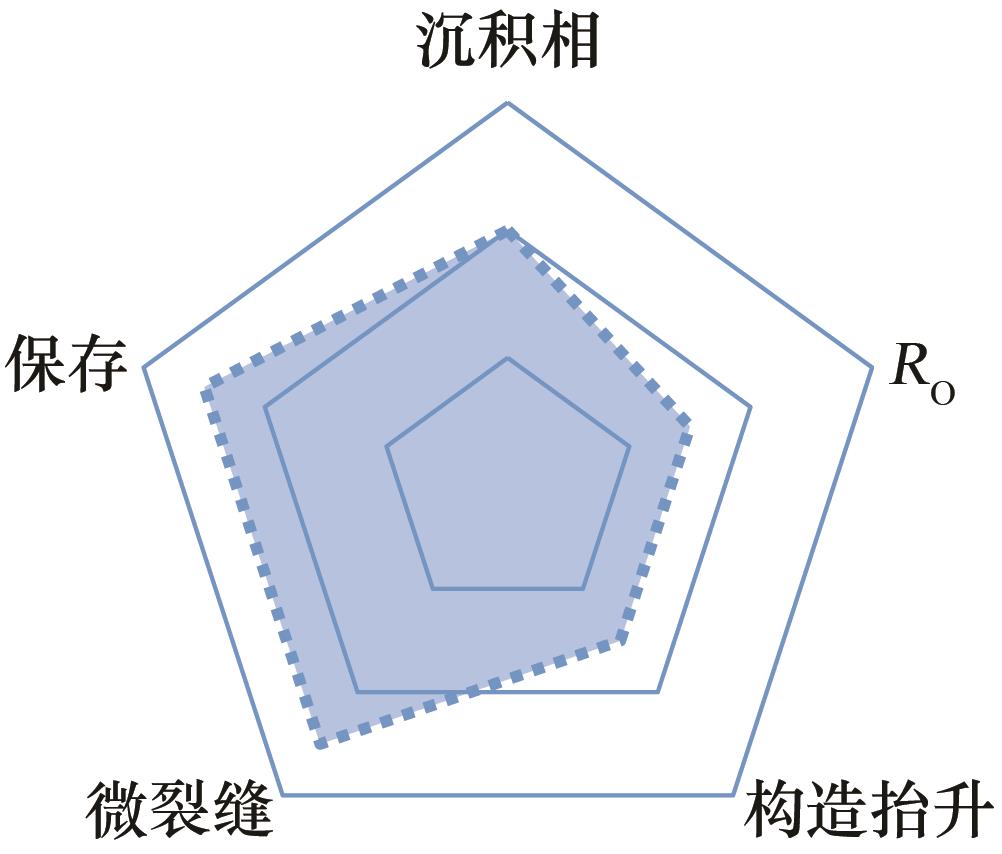 | 井名 | 相带 | TOC/% | 厚度/m | 油气显示/% | 测井解释孔隙度/% | R O/% |