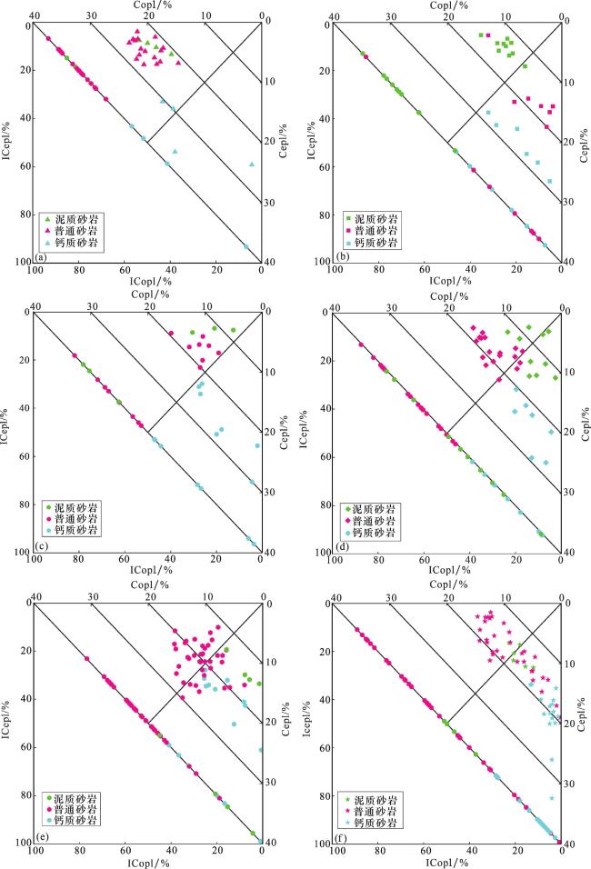 | 砂岩类型 | 富泥砂 | 钙质砂 | 普通砂 | 富泥砂 | 钙质砂 | 普通砂 | 富泥砂 | 钙质砂 | 普通砂 |