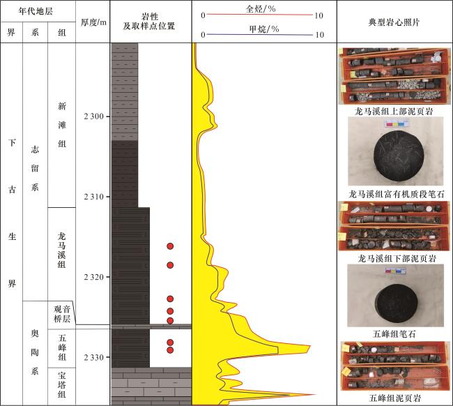 表1 黔北地区五峰组—龙马溪组页岩甲烷气体拉曼位移参数Table 1 Raman displacement parameters table of methane gas in Wufeng-Longmaxi formations shale in northern Guizhou |