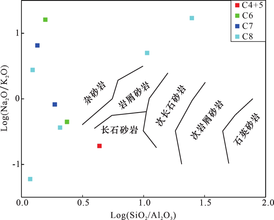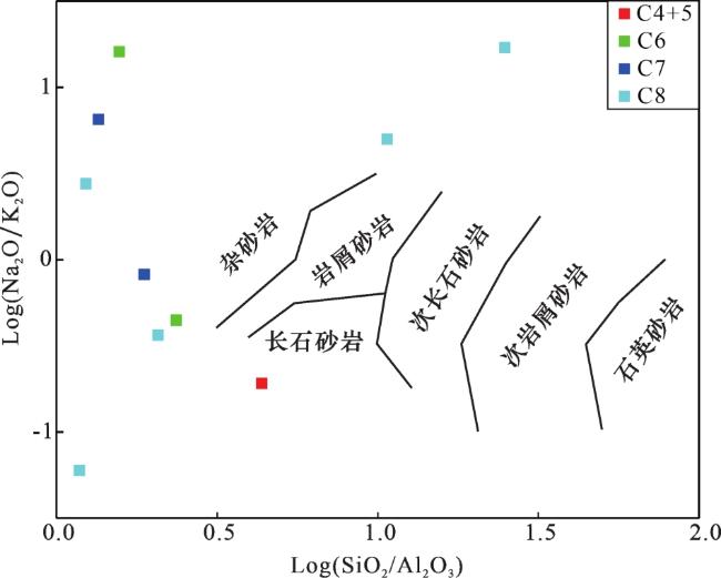 表2 旬邑地区延长组砂岩主量元素含量分析结果Table 2 Major elements contents for the sandstones of Yanchang Formation in the Xunyi area |