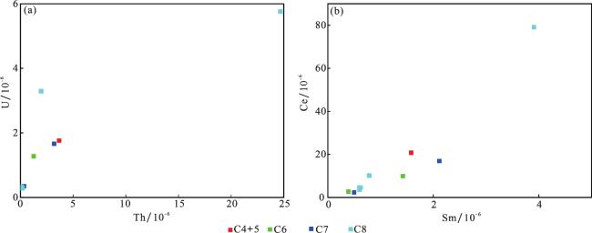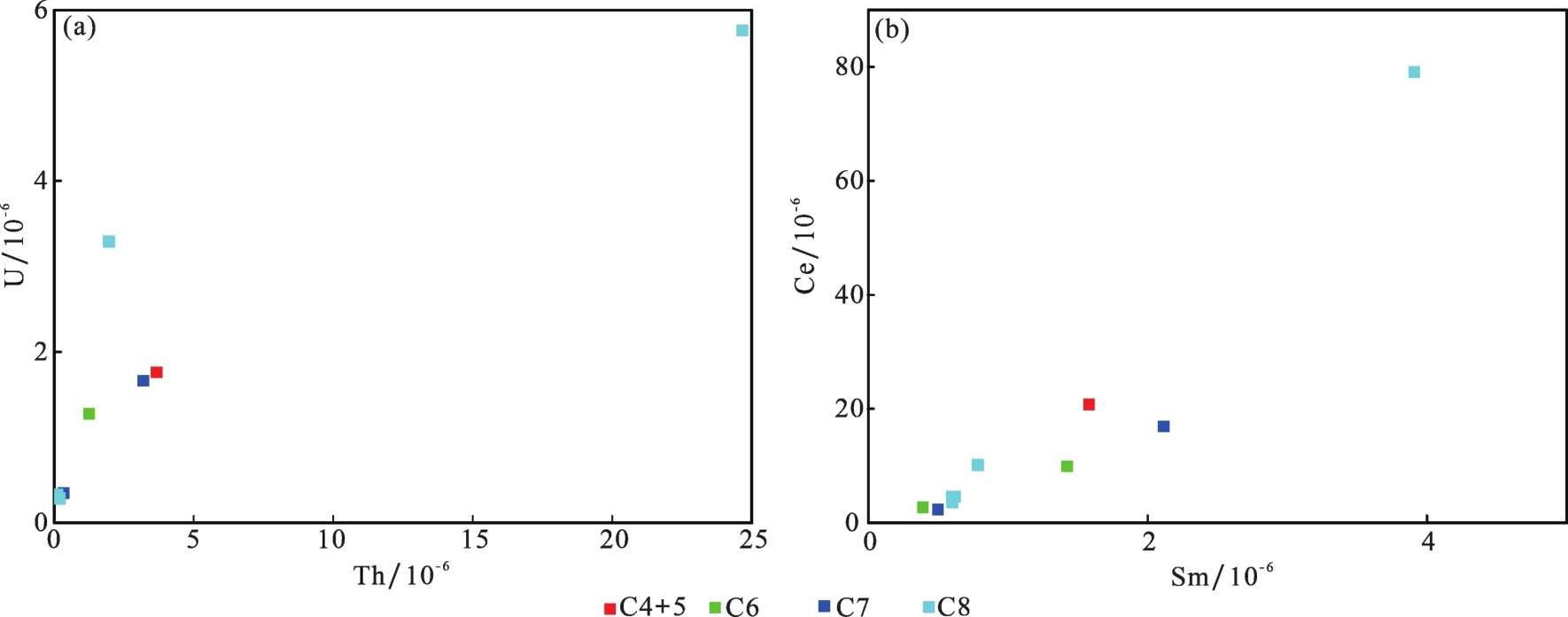 表3 旬邑地区延长组砂岩微量元素含量分析结果(×10-6)Table 3 Trace elements contents for the sandstones of Yanchang Formation in the Xunyi area(×10-6) |