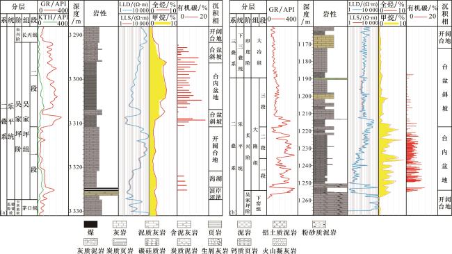 表1 鄂西地区吴家坪组二段与大隆组岩石特征参数对比Table 1 Comparison of rock characteristic parameters for the second member of Wujiaping Formation and Dalong Formation in western Hubei area |