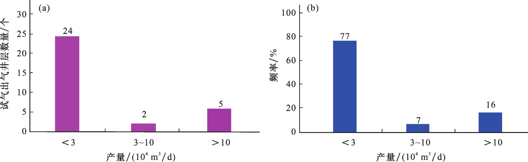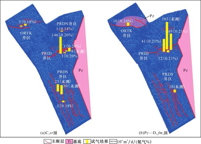 图8 苏克气田基底和上泥盆统储层产量分布直方图Fig.8 Production distribution histograms of basement and Upper Devonian reservoir in Sozak Gas Field |