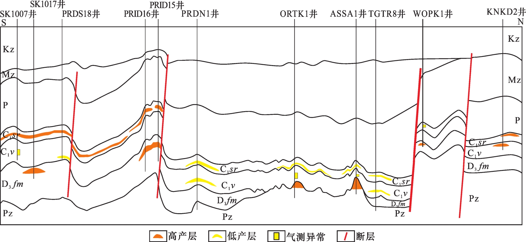 | 地层 | PRDS | PRID | ASSA | ORTK | TAM | WOPK | KNKD | |||
