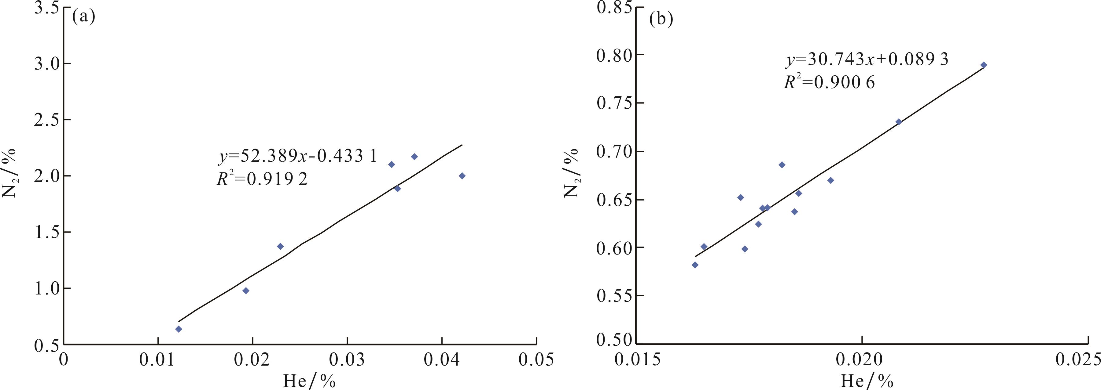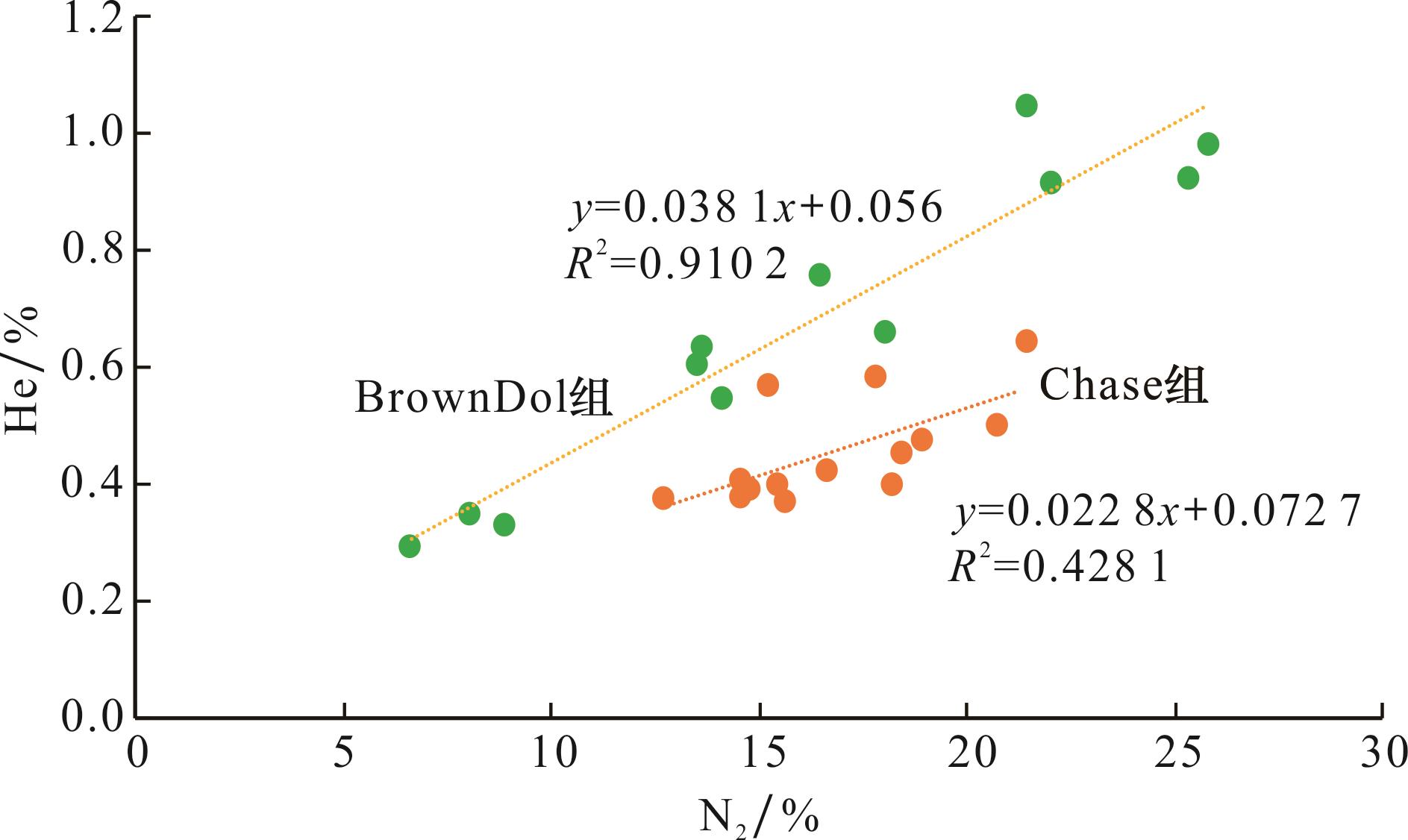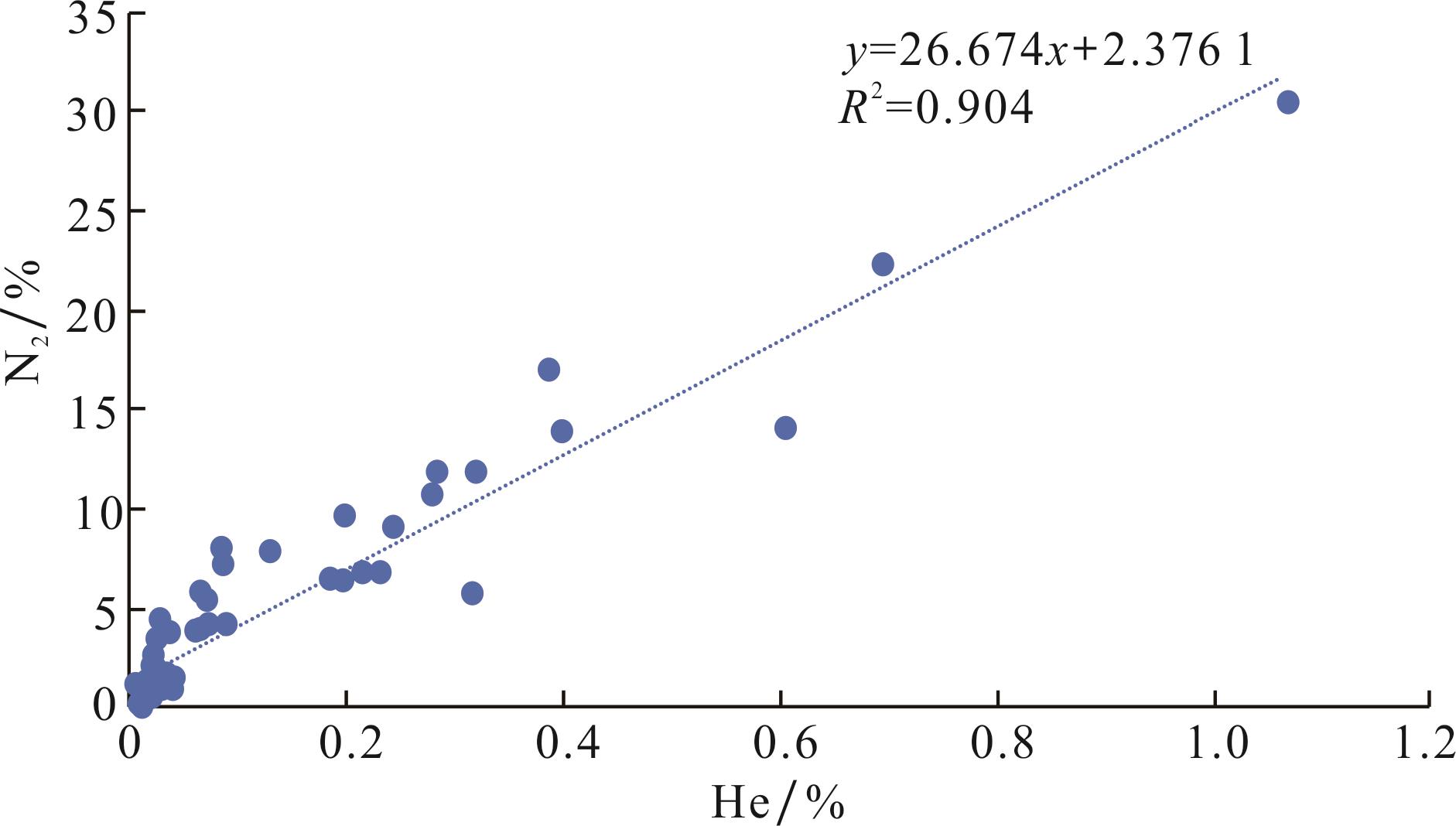 4 贫氦气藏中氦气与氮气含量的相关性