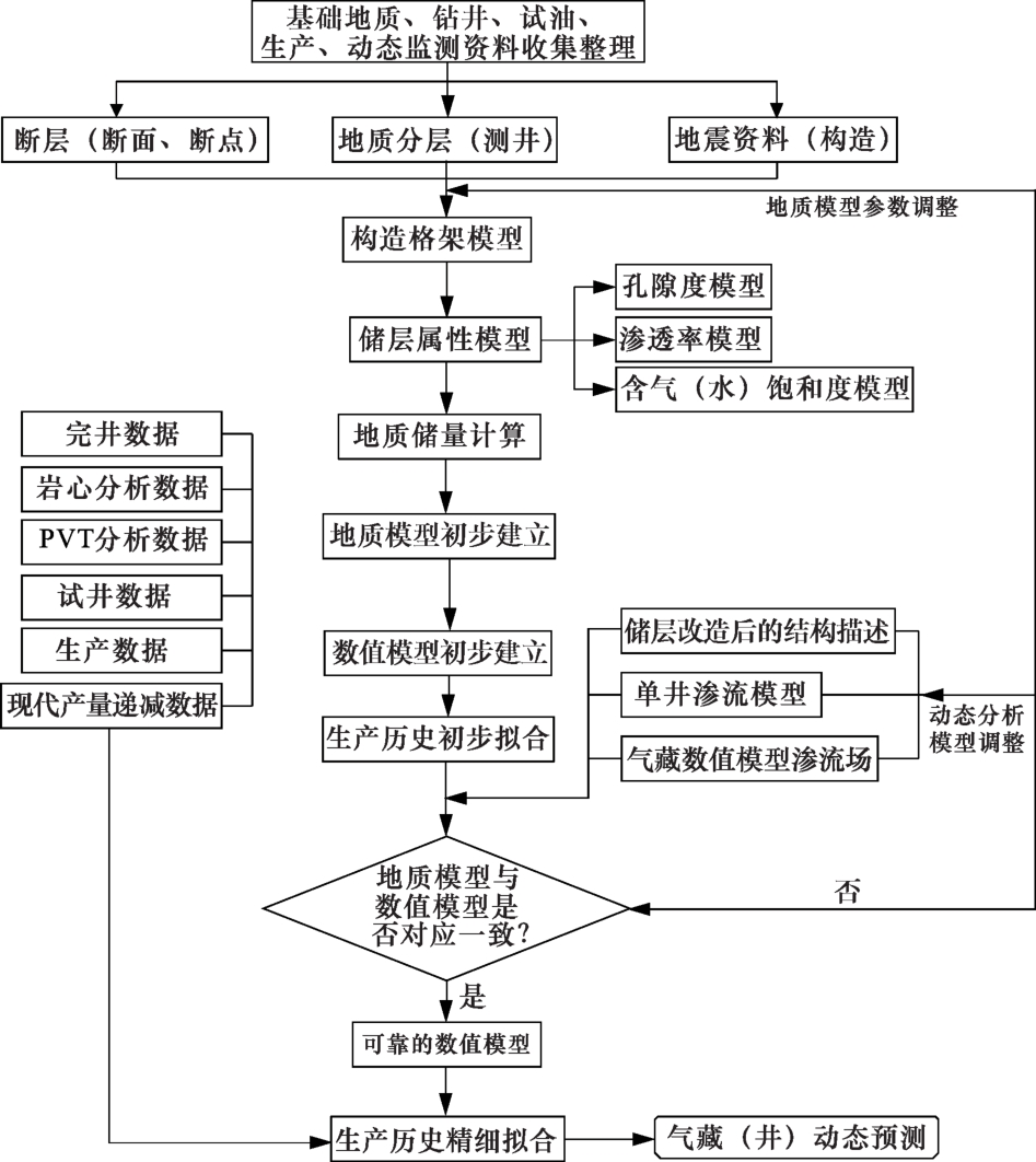 | 气藏数值模拟模型[1,90] | 以气藏地质模型为基础,利用计算机求解气藏数学模型,模拟地下气水流动,给出某时刻气水分布,以预测气藏动态 | 定量描述并预测气藏多孔介质中流体的流动规律 | |