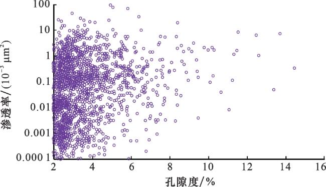 图5 四川盆地下二叠系原始孔渗关系与储层改造后的宏观孔渗关系对比Fig.5 Comparison between the original porosity and permeability relationship of the Lower Permian in Sichuan Basin and the macro porosity and permeability relationship after reservoir reconstruction |