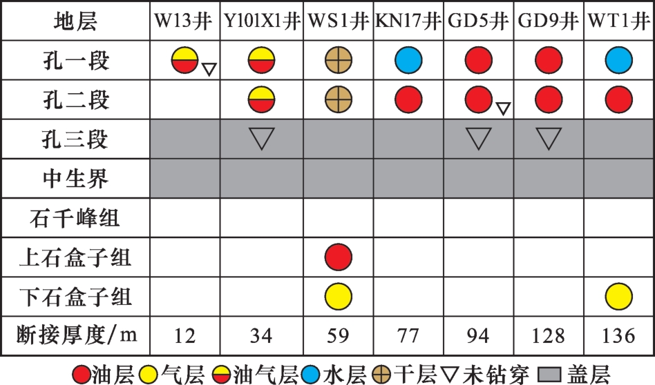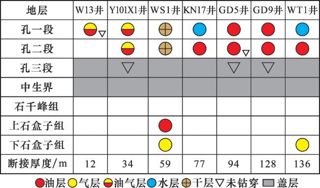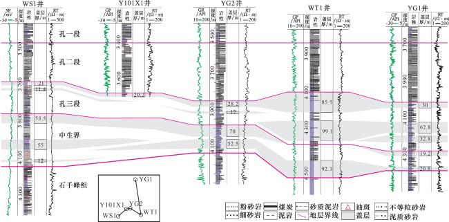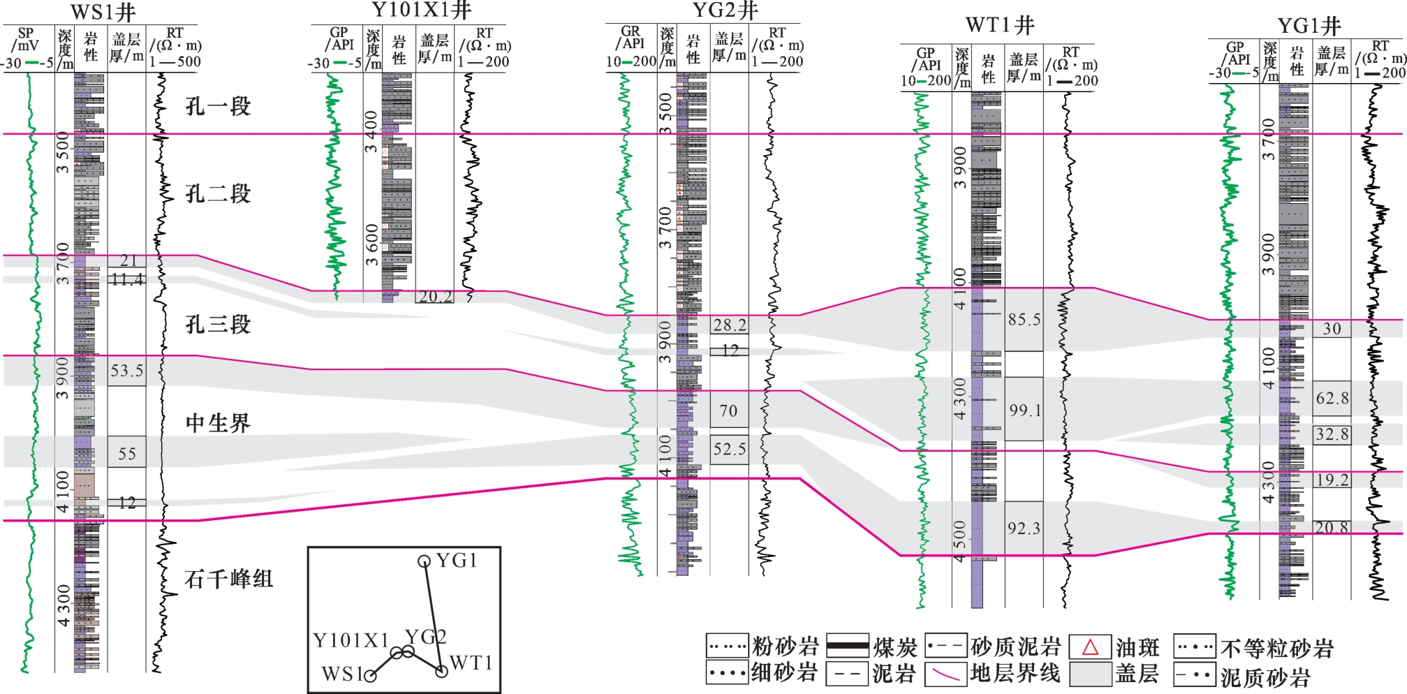 图4 乌马营地区孔三段—中生界盖层连井剖面Fig.4 Profile of caprocks of the third member of Kongdian Formation-Mesozoic stratum in Wumaying area |