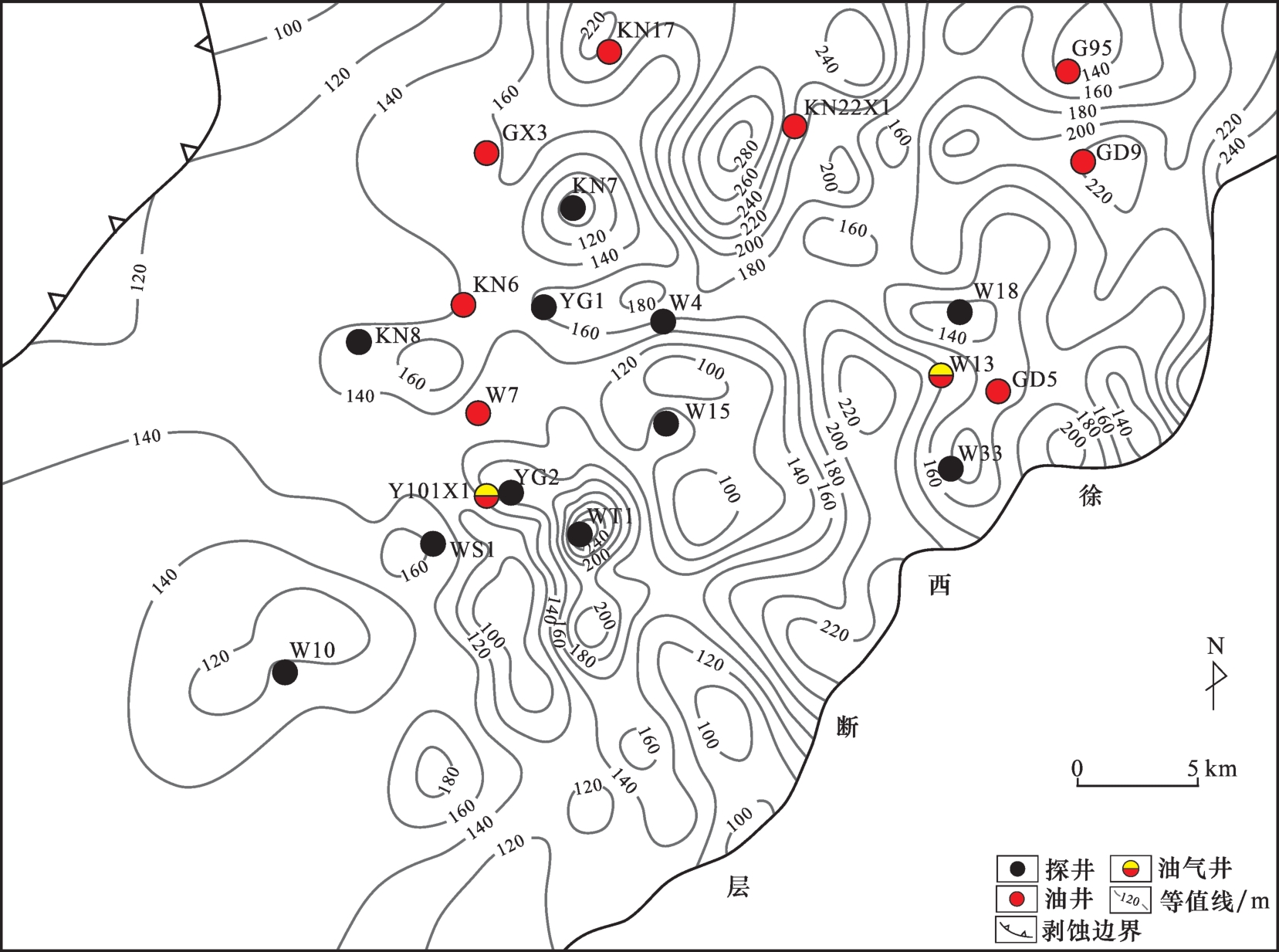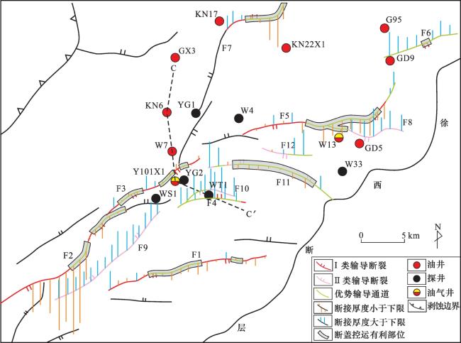 图8 乌马营地区孔三段—中生界盖层断接厚度封天然气下限Fig.8 Lower limit of faulted-contact thickness of the third member of Kongdian Formation-Mesozoic stratum caprock sealing natural gas in Wumaying area |