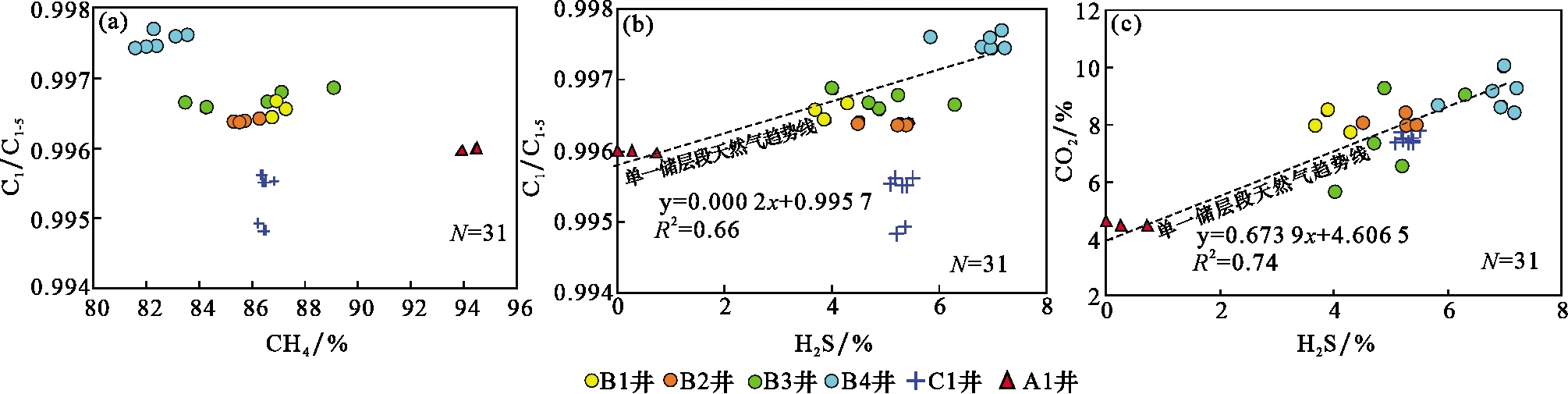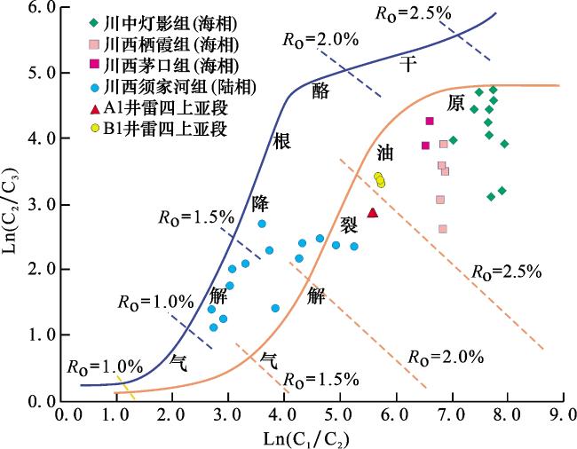 表1 新场雷口坡组四段天然气组分分析数据Table 1 Natural gas composition analysis data of the fourth member of the Leikoupo Formation gas reservoir in Xinchang area |