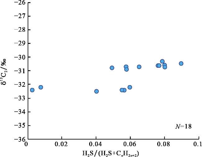 表2 新场雷口坡组四段天然气碳氢同位素分析数据Table 2 Carbon and hydrogen isotope analysis data of natural gas in the fourth member of the Leikoupo Formation gas reservoir in Xinchang area |