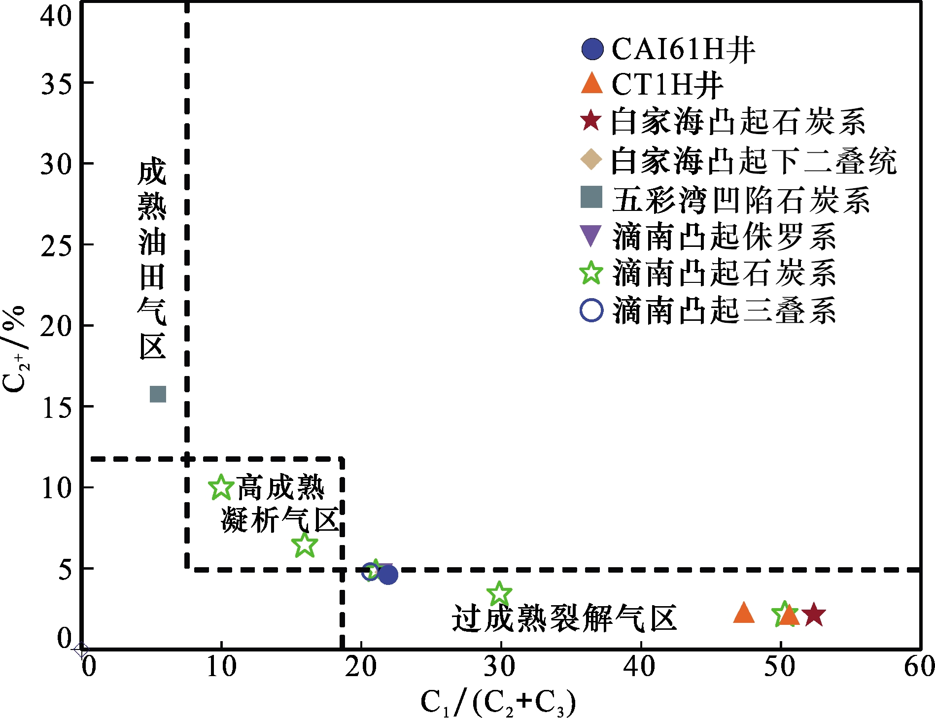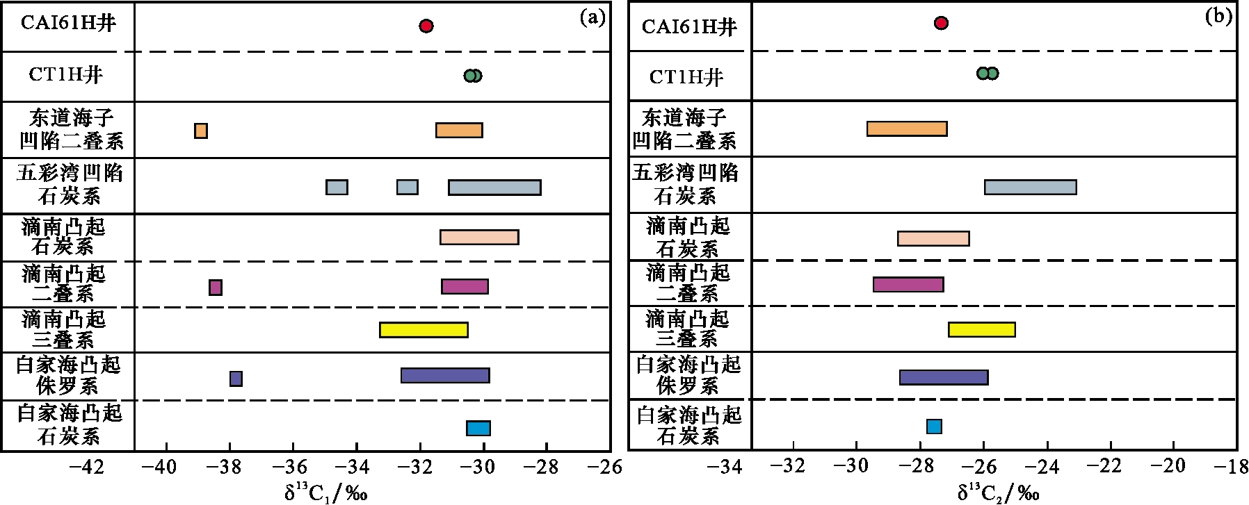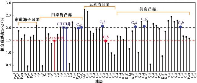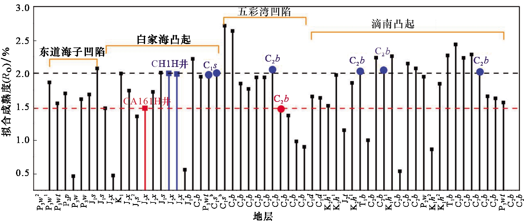| 白家海凸起 | CT1H | J2 x | -30.1 | -26.1 | -25.5 | 95.3 | 1.89 | 2.1 | 0.98 | C2 b |