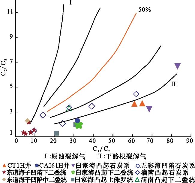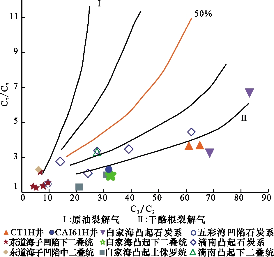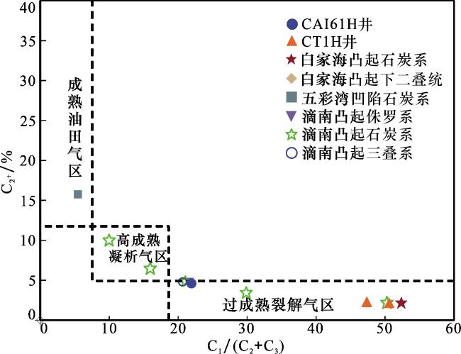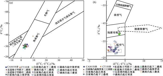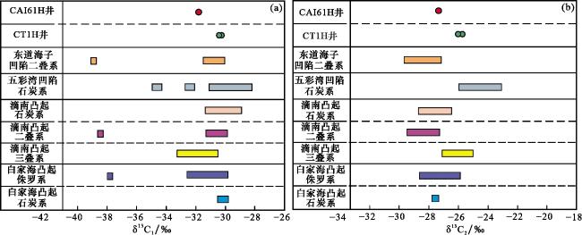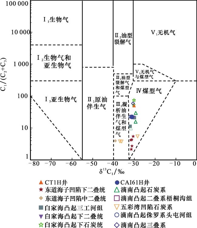 表1 研究区天然气碳同位素与组分特征Table 1 Carbon isotope and composition characteristics of natural gas in research area |