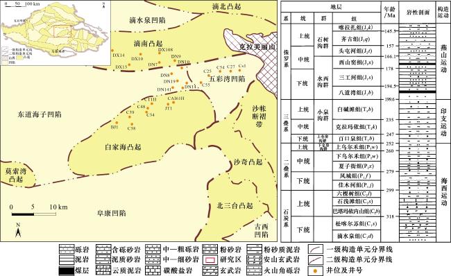 | 东 道 海 子 凹 陷 | Dn141 | P3 w | 1.86 | 1.82 | 1.97 | 五 彩 湾 凹 陷 | Cs1 | C2 b | 1.46 | 1.21 | 1.57 |