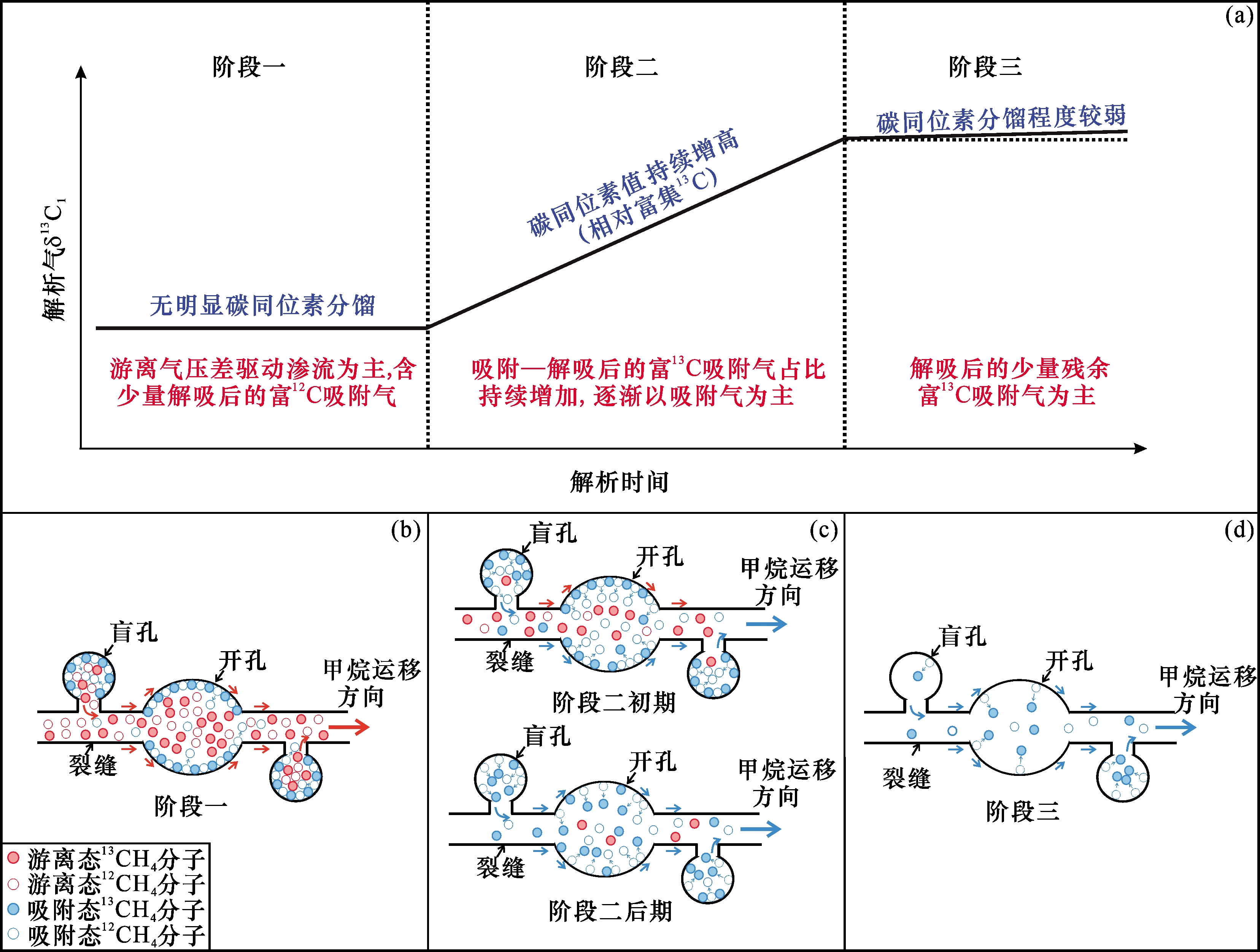 3.2 煤岩气解析过程中甲烷碳同位素分馏模式