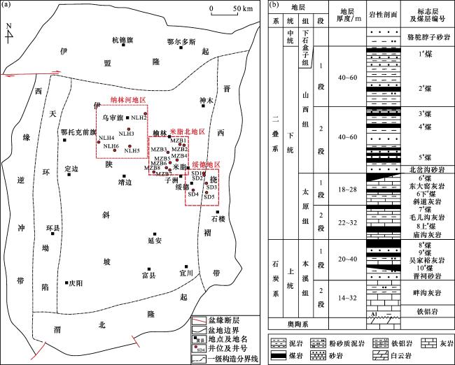 | SD1-8-2-1 | 绥德 | SD1 | 绳索取心 | 2 382.78~2 383.00 | 本溪组 | 80.87 | 1.87 | 17.26 | 0 | 2.35 | 7.85 | 27.50 |