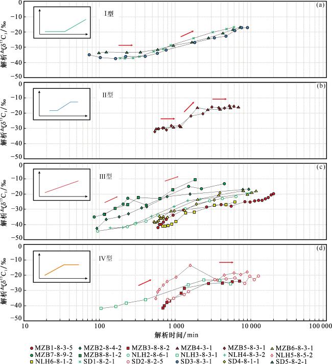 3.1 煤岩气甲烷碳同位素解析曲线特征及类型划分