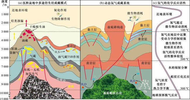 早期研究尚未明确沉积盆地中氢气的富集机理和分布特征,美国各大油气田内共计14 242个天然气样品的分析测试结果表明,仅有5个样品的氢气浓度大于10%