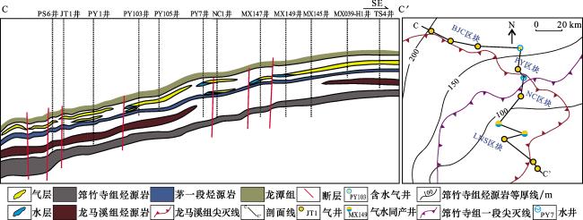 | BJC区块 | 茅二段 | 6 074.7 | -5 675.3 | 510 | 137.92 | 135.673 | 0.33~27.11 | 低—高产 |