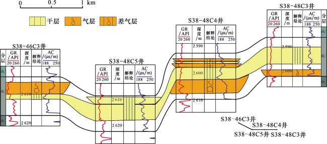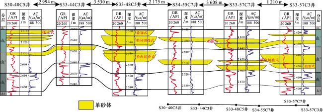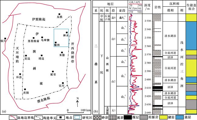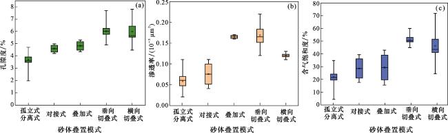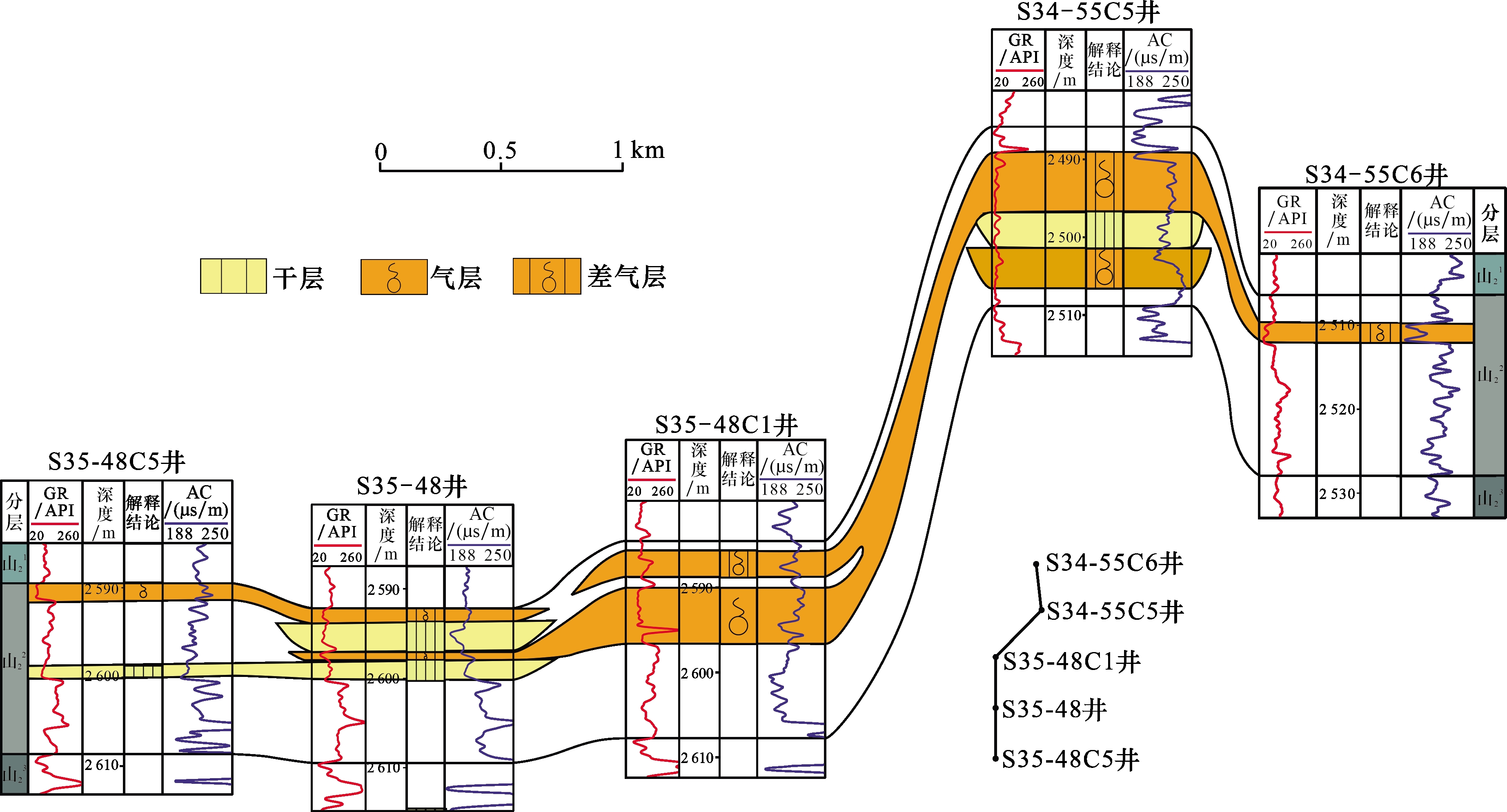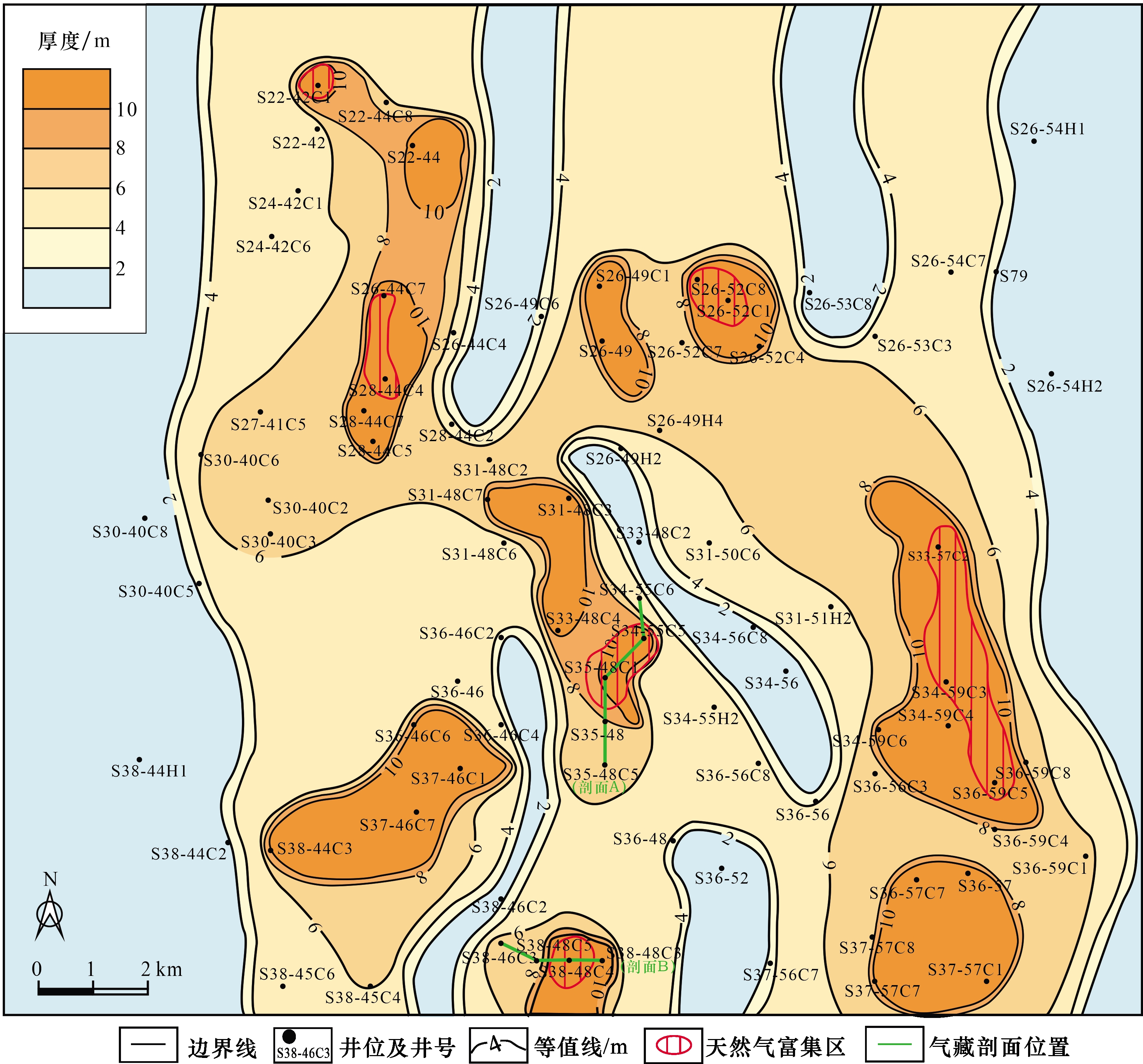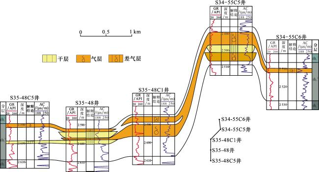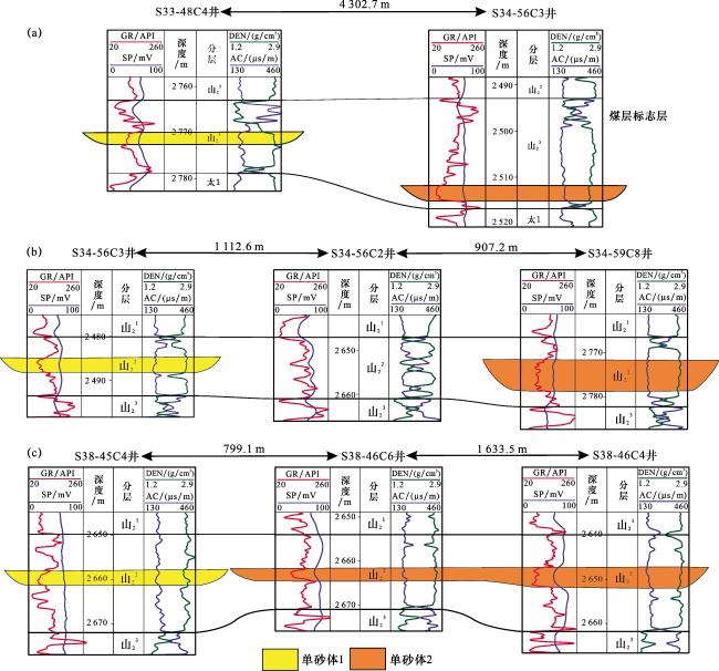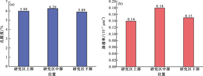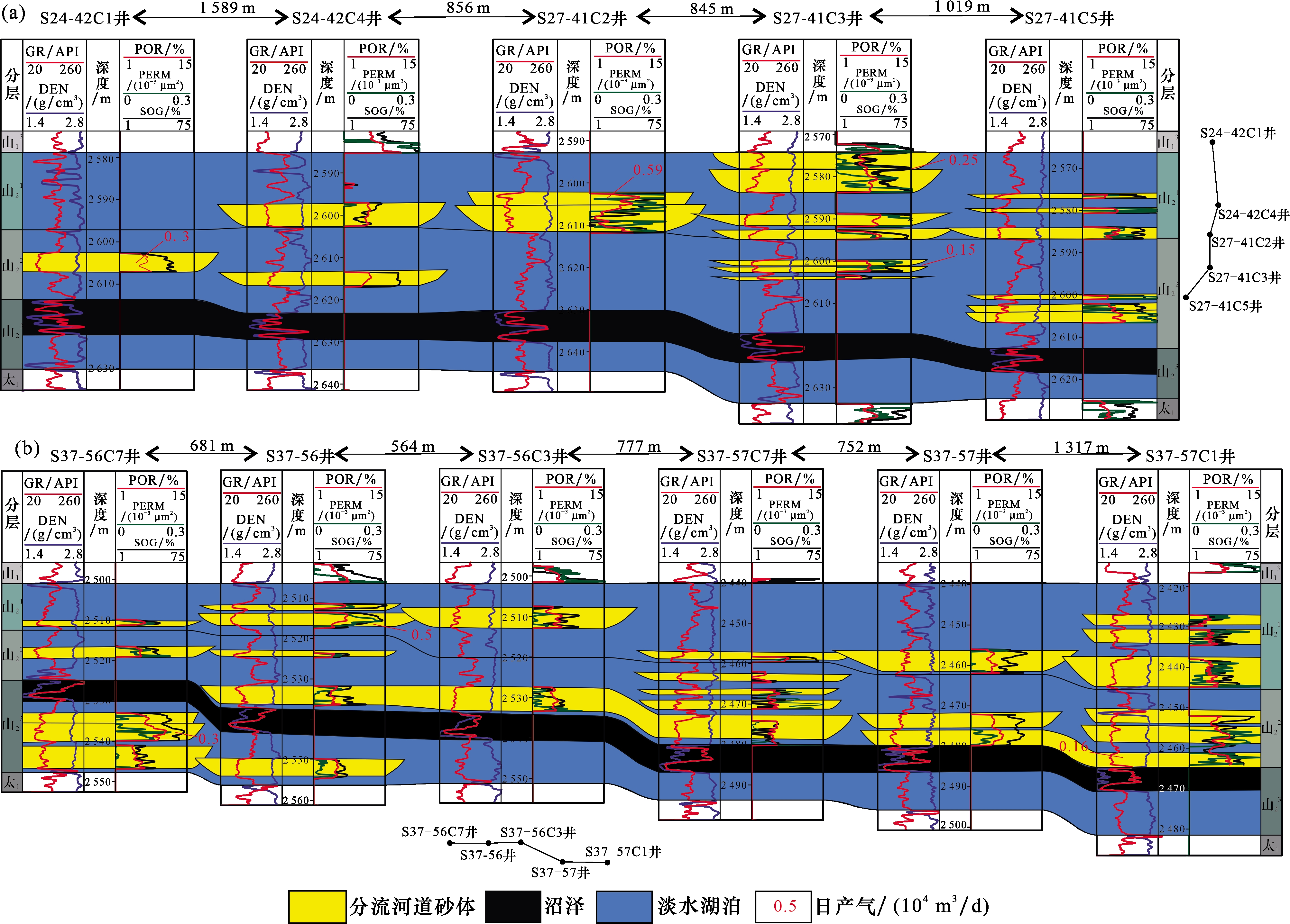 图3 S51井区不同位置山2段孔隙度(a)和渗透率(b)分布Fig.3 Distribution of porosity (a) and permeability (b) of the Shan 2 Member in different locations of the S51 well block |