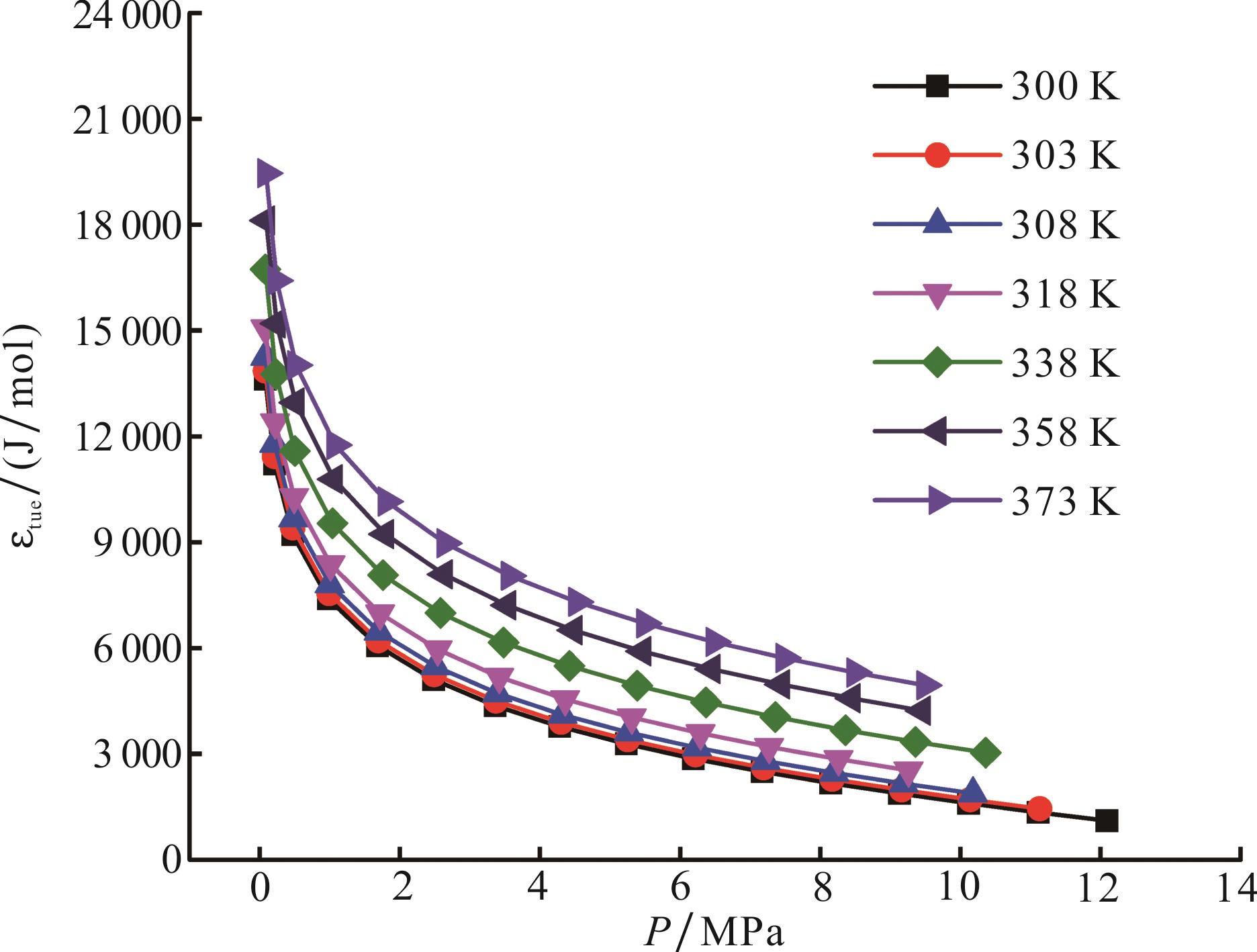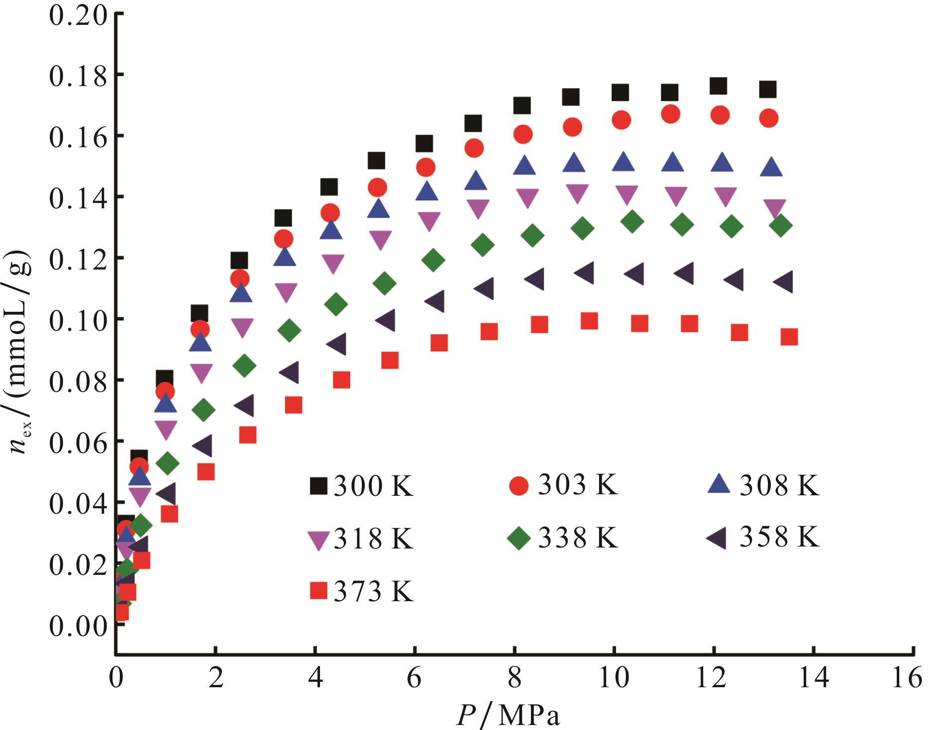 图8 温度300~373 K范围内霍尔姆页岩吸附CH4的吸附相压力曲线Fig.8 Adsorption phase pressure curve of Holm shale adsorbing CH4 within the temperature range of 300-373 K |