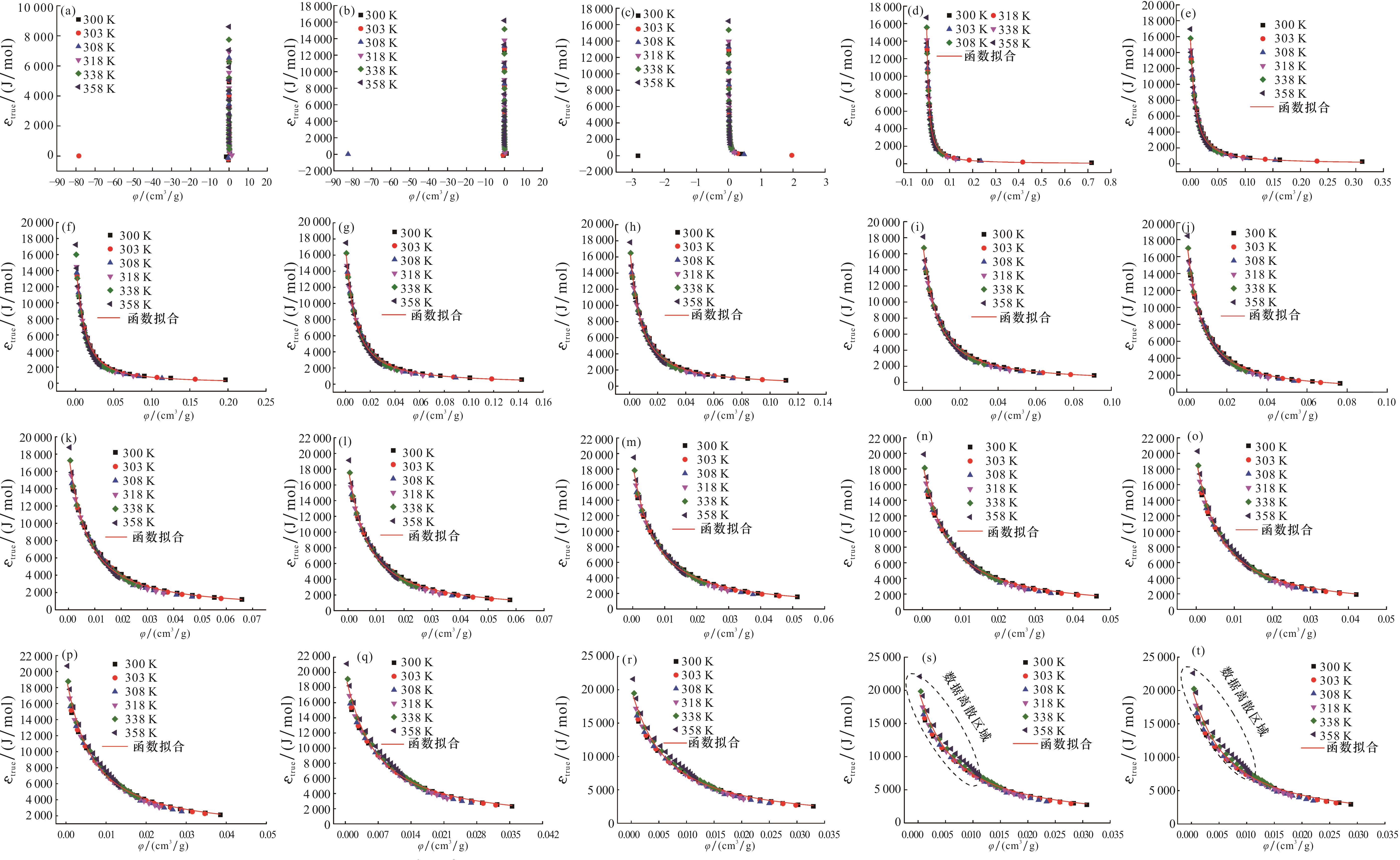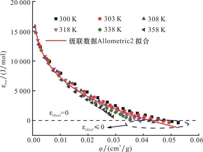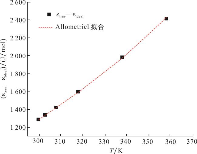 表2 理想气体吸附势和超临界态气体吸附势曲线的拟合函数参数Table 2 The fitting function parameters of the adsorption potential curves of ideal gases and supercritical gases |