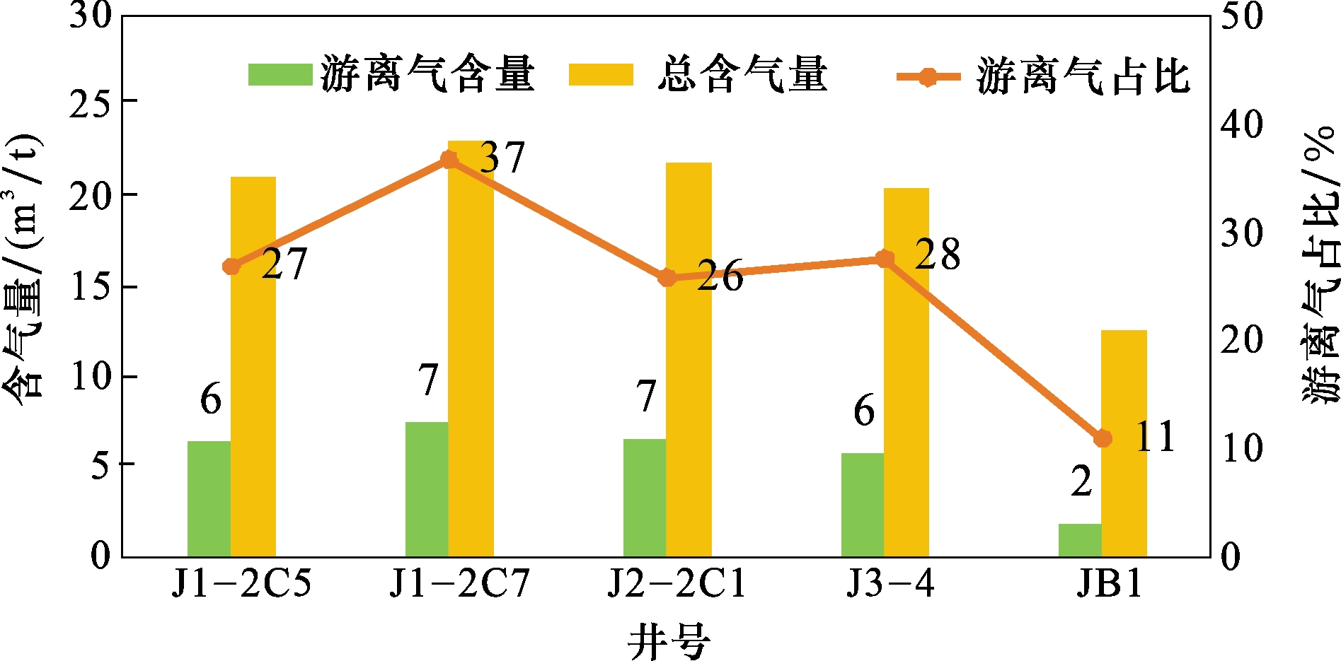 4.1 含气量及游离气占比