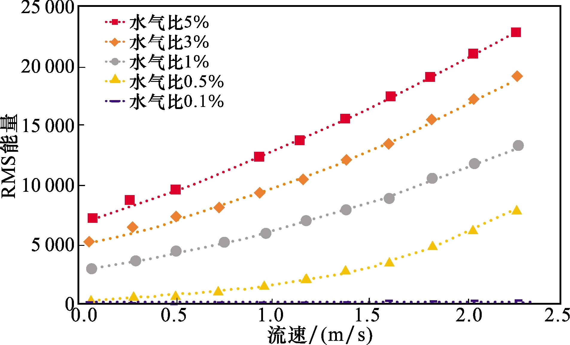 [14]采集垂直井和水平流动环路的DAS数据,并进行时域(RMS)、频域(FBE)信号处理,结合线性、指数、三次多项式经验关联函数拟合的手段,证明在50~300 GPM的垂直井及12~36 GPM的水平环路流速范围内,DAS能有效预测流速,最佳关联模型决定系数(