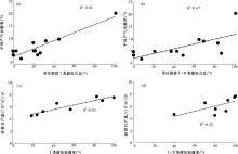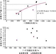 (a)产期贡献率与单压裂段I类储层占比交会图;(b)产期贡献率与单压裂段I+II类储层占比交会图;(c)初期日产量与I类储层钻遇率交会图 (d)初期日产量与I+II类储层钻遇率交会图