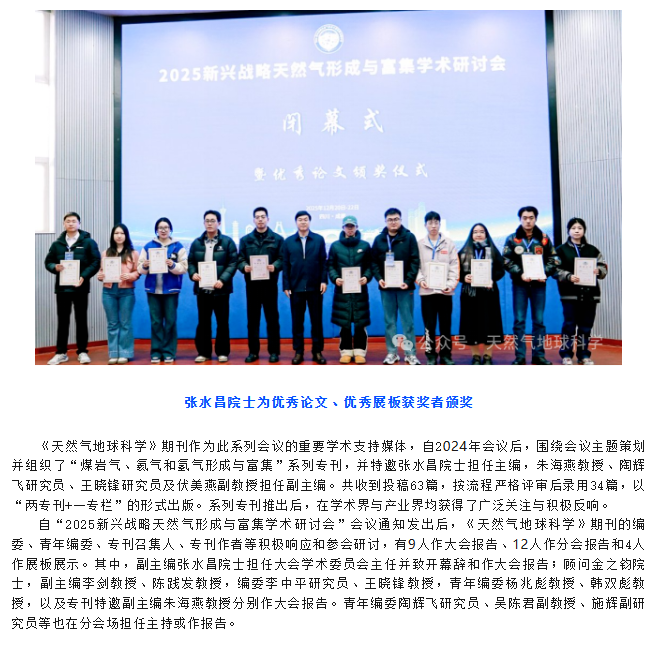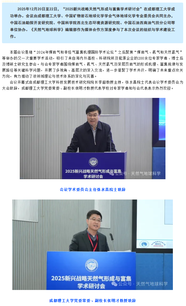 《天然气地球科学》深度参与的“2025 新兴战略天然气形成与富集学术研讨会”取得 圆满成功