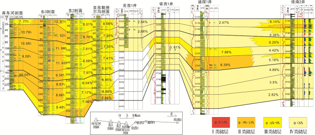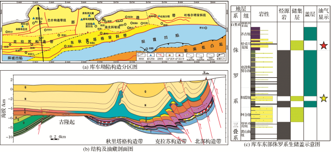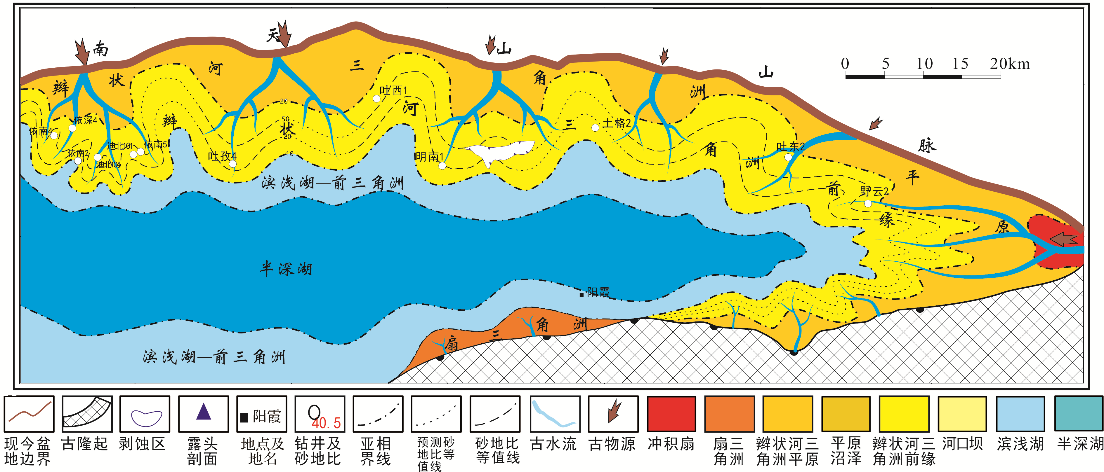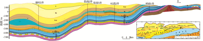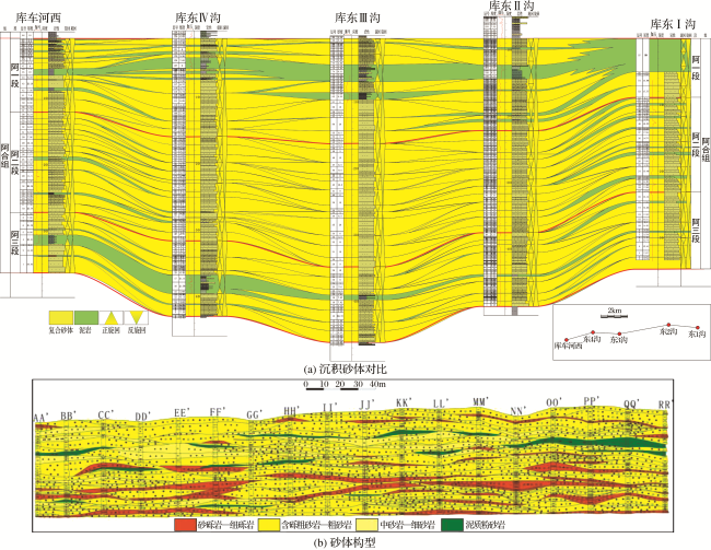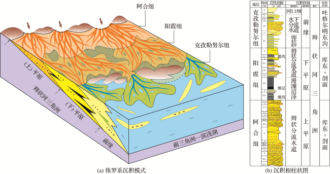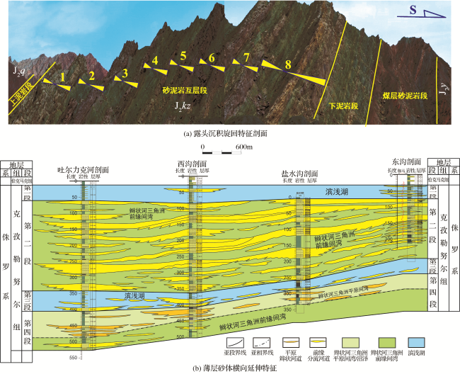 图2 库车坳陷北部构造带中下侏罗统(阿合组—阳霞组—克孜勒努尔组)沉积相模式Fig.2 Sedimentary facies model of Middle and Lower Jurassic (Ahe-Yangxia-Kezilenur Formations) |