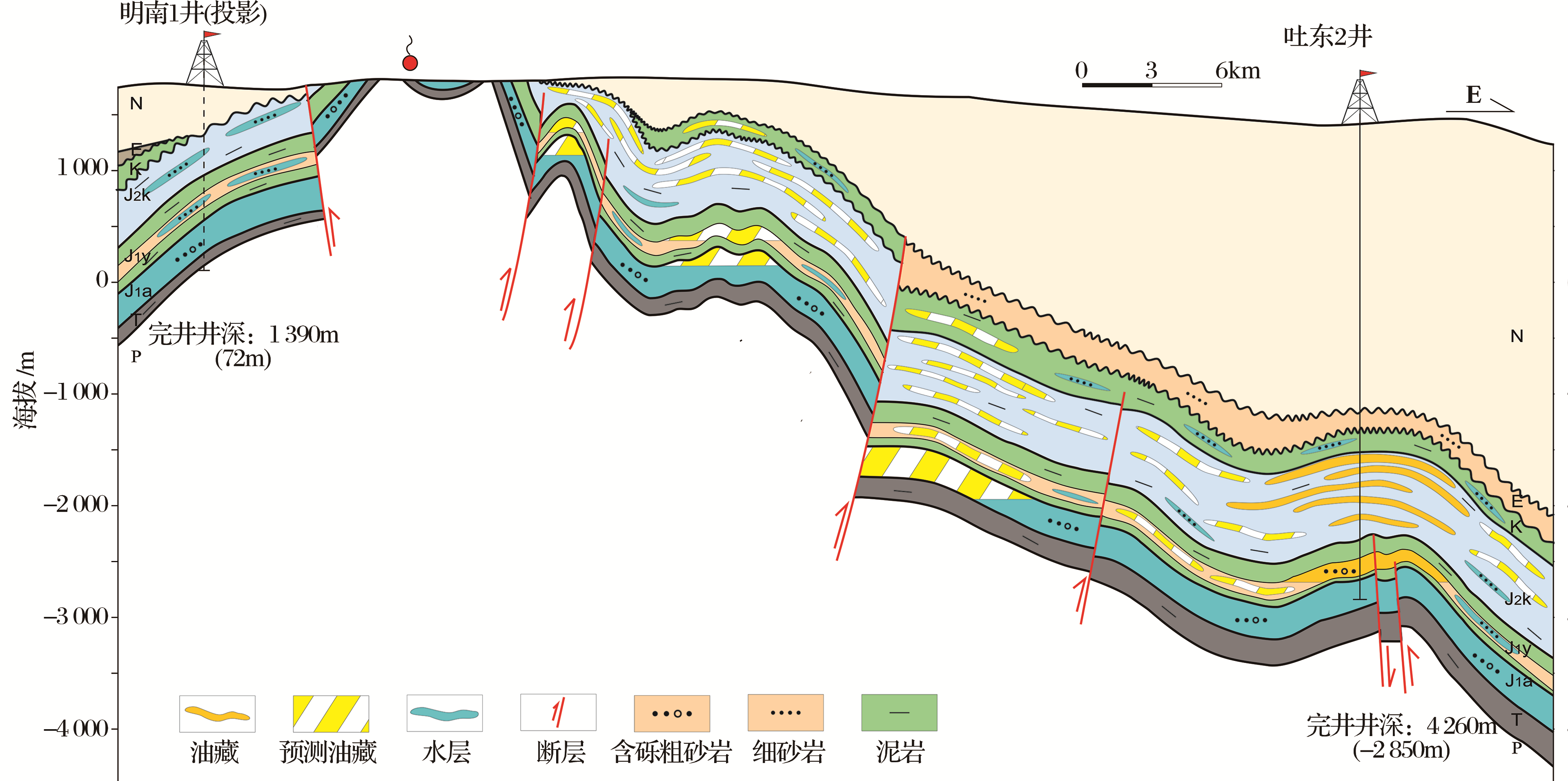 图10 库车坳陷北部构造带中东段迪北斜坡带—吐格尔明隆起带侏罗系成藏模式Fig.10 Jurassic accumulation model in the Dibei slope belt-Tugeerming uplift belt, middle-east section of northern tectonic belt of Kuqa Depression |
